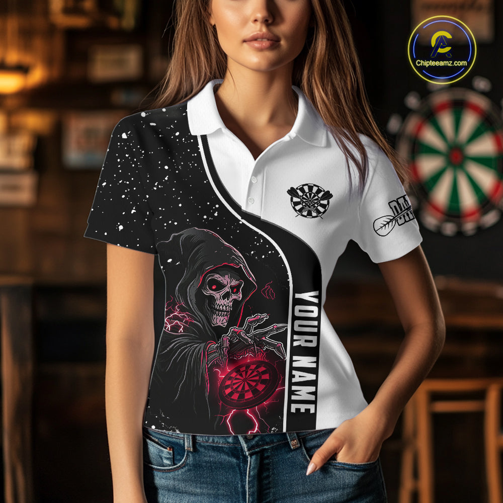 Red Grim Reaper Darts Women Polo & Quarter-Zip Custom Darts Shirts For Team Darts Jerseys TDM5525