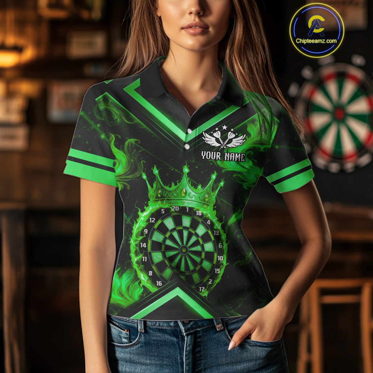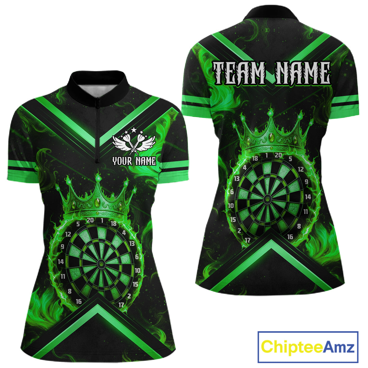 Black And Green Dartboard Crown Darts Shirt For Women Custom Dart Jerseys Team Polo & 1/4 Zip TDM5527
