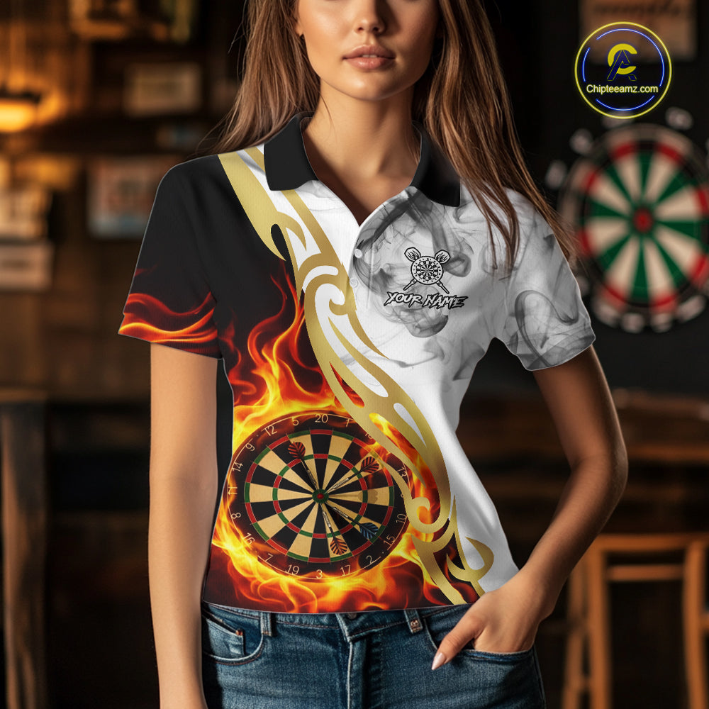 Personalized Flame Smoke Tribal Darts Shirt For Women Custom Golden Darts Jersey Team Polo & 1/4 Zip TDM5537