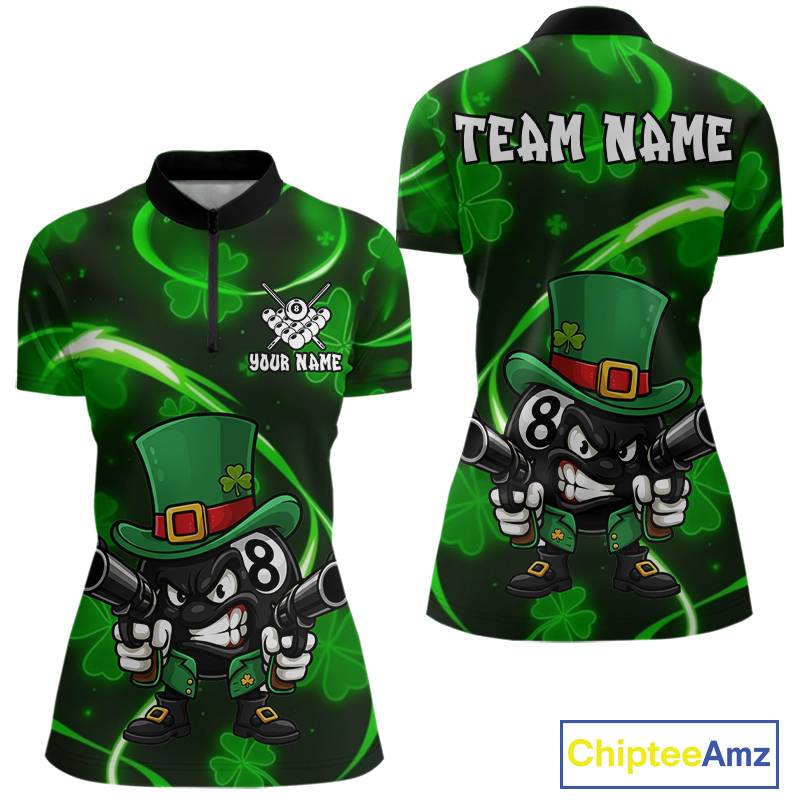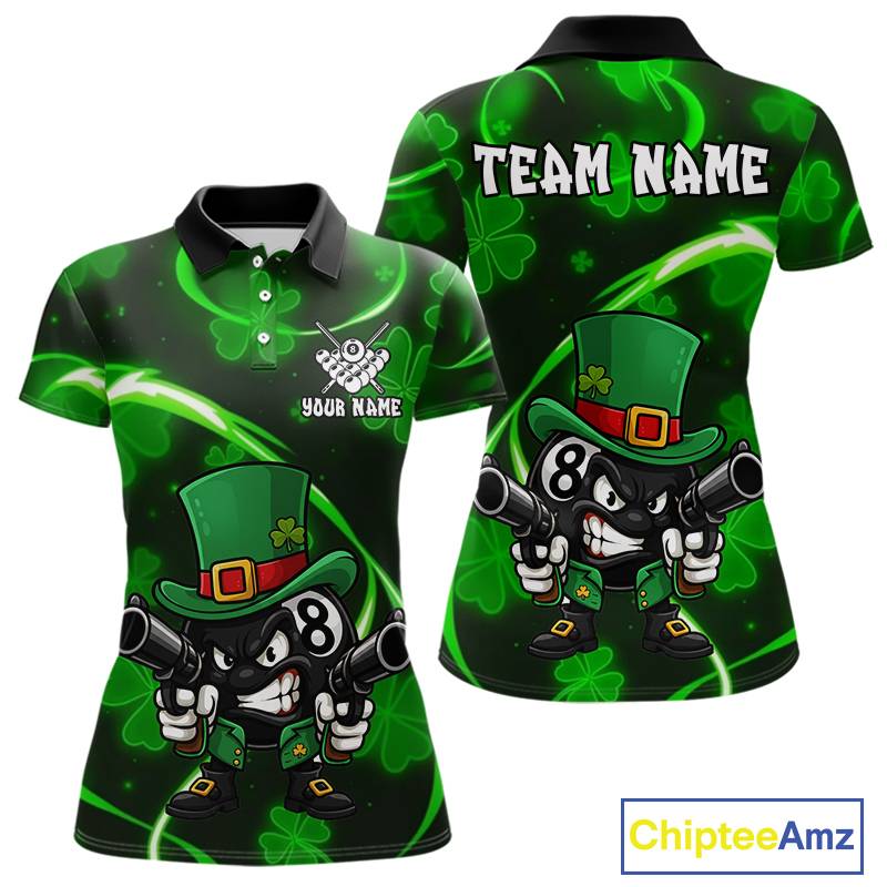 Personalized St Patrick Day 8 Ball Billiard Shirt For Women, Funny Shamrock Luckiest Billiard Jersey TDM5538