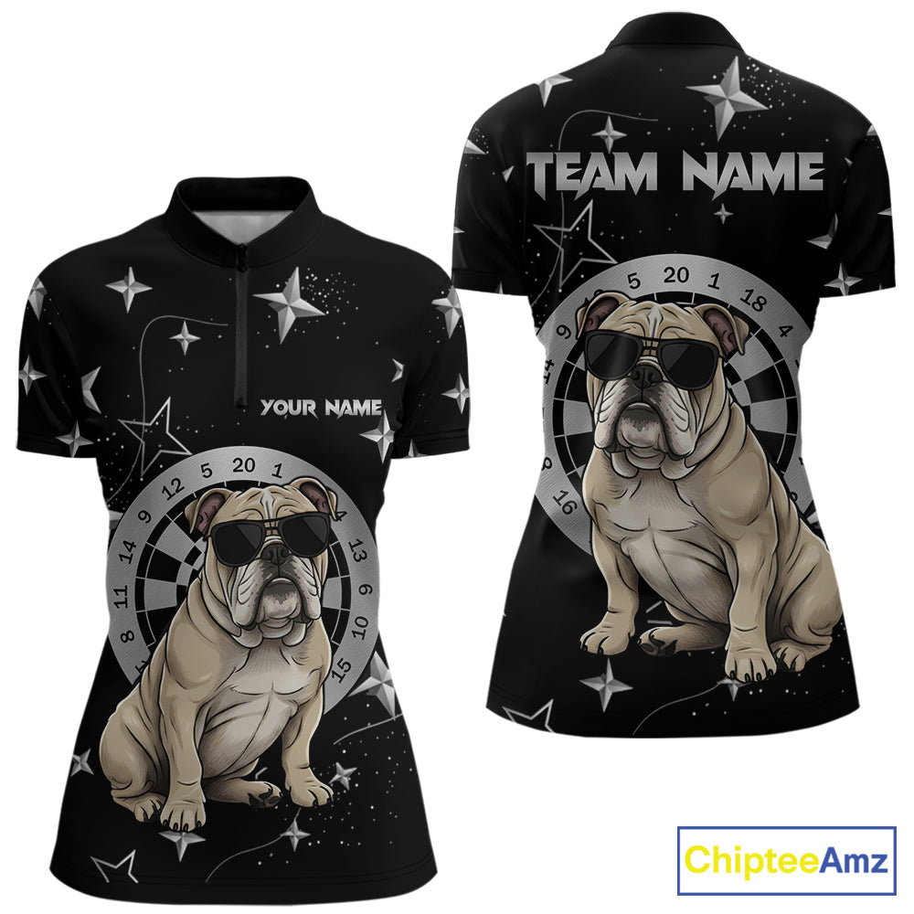Personalized Funny Bulldog Darts Shirt For Women Custom Star Pattern Dart Jersey Team Polo & 1/4 Zip TDM5554