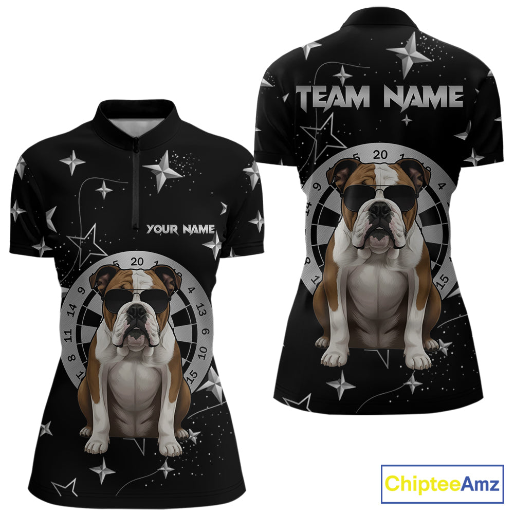 Personalized Funny Bulldog Darts Shirt For Women Custom Star Pattern Dart Jersey Team Polo & 1/4 Zip TDM5555