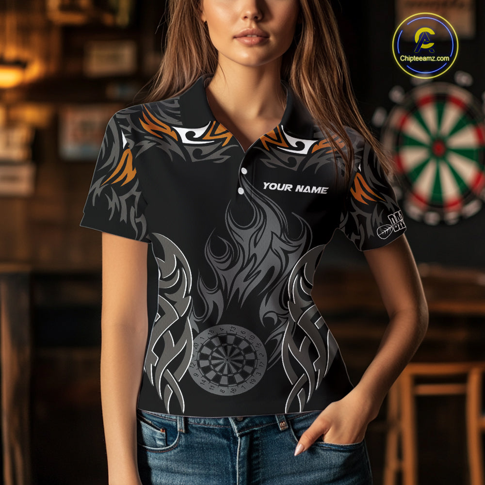Personalized Darts Tournament Jerseys For Women Custom Dartboard Fire Flame Darts Shirts |Orange TDM5566