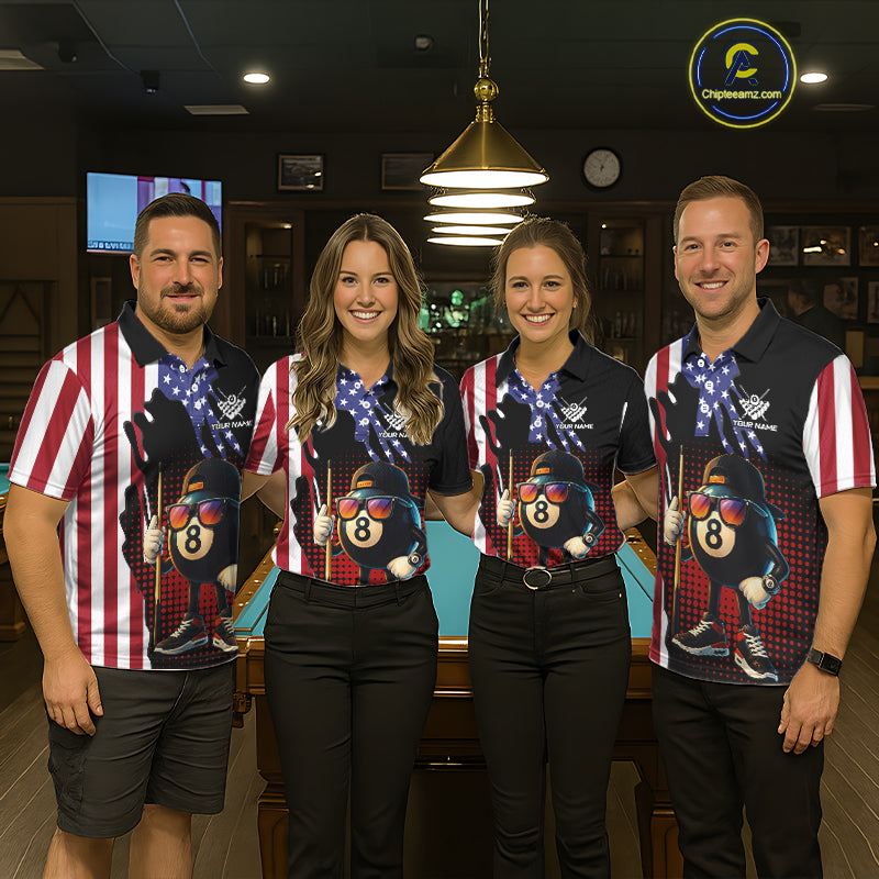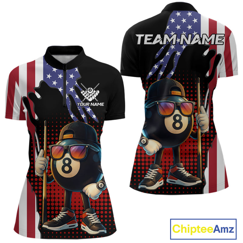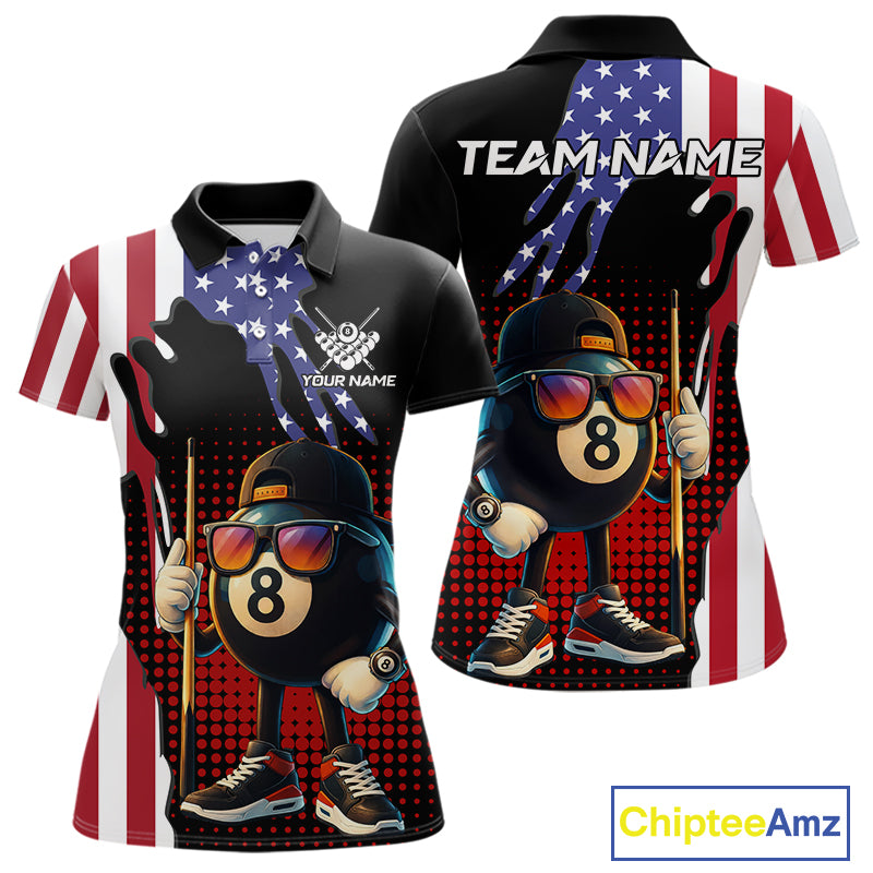 American Flag Funny 8 Ball Pool Billiard Shirt For Women Custom Patriotic Billiard Team Jersey TDM5576