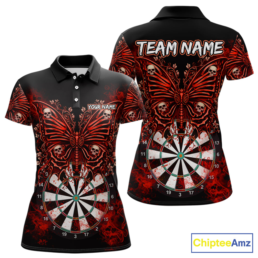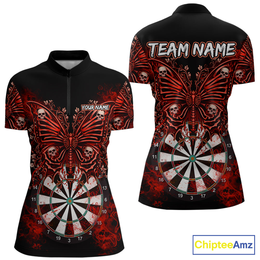 Red Dartboard Butterfly Skull Darts Shirt For Women Custom Darts League Team Jersey Polo & 1/4 Zip TDM5583