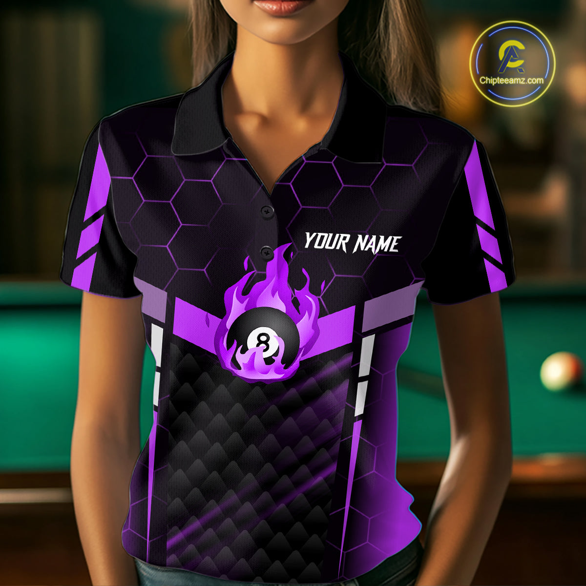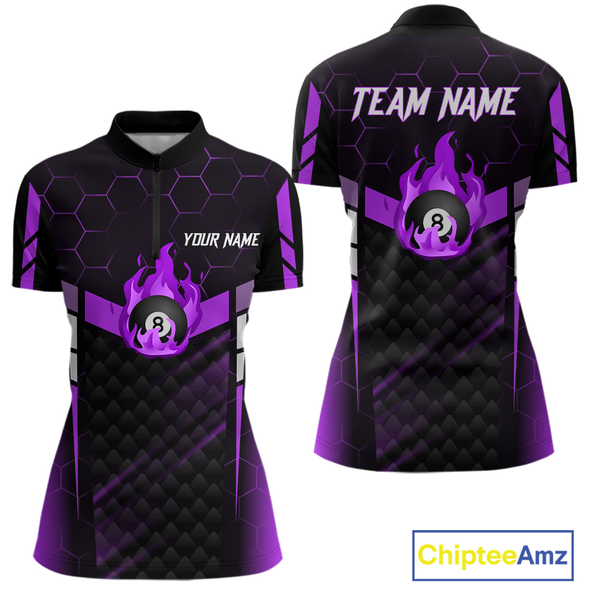 Personalized Purple 8 Ball Flame Billiard Shirt For Women Custom Billiard Team Jersey Polo & 1/4 Zip TDM5585