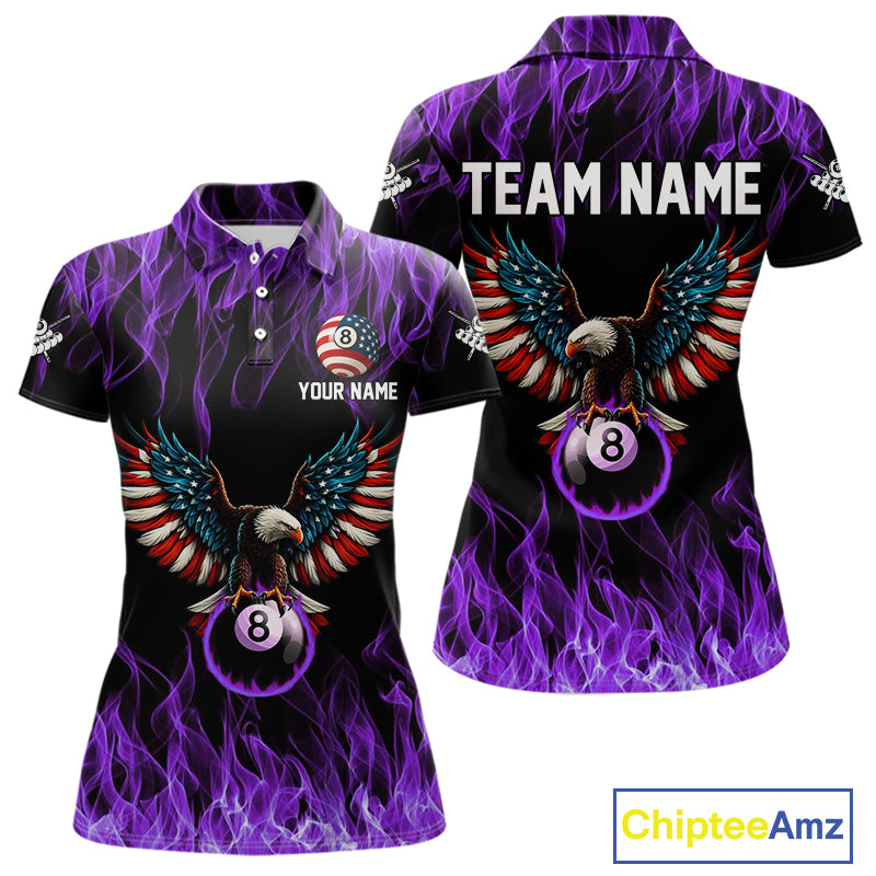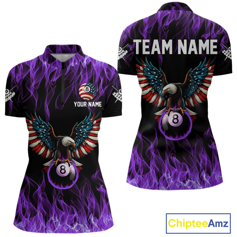 Purple Flaming American Flag Eagle 8 Ball Billiard Shirt For Women Custom Patriotic Pool Team Jersey TDM5588