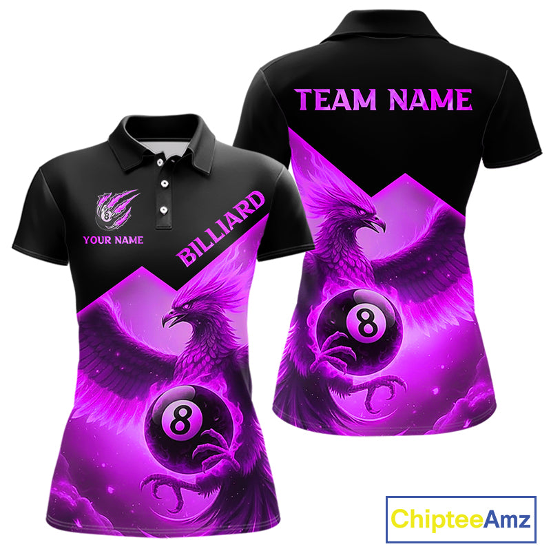 Purple 8 Ball Flame Phoenix Billiard Shirt For Women Custom Pool Team Jersey Polo & Quarter Zip TDM5605