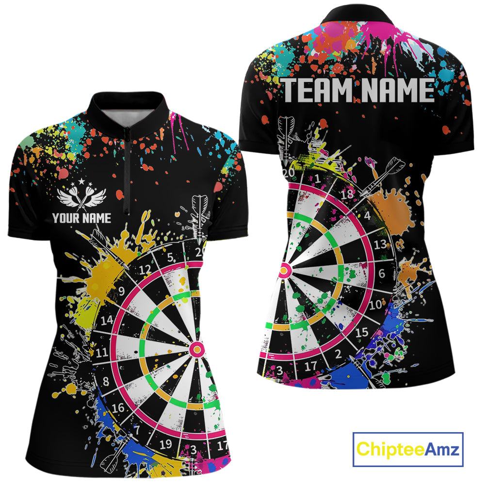 Funny Dartboard Colorful Paint Dart Shirt For Women Custom Darts Team Jersey Polo & 1/4 Zip |Black TDM5624