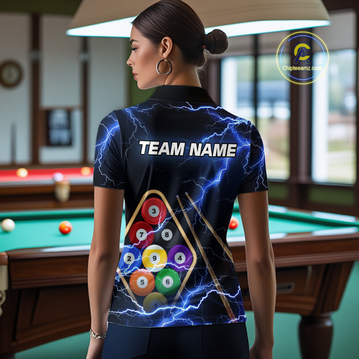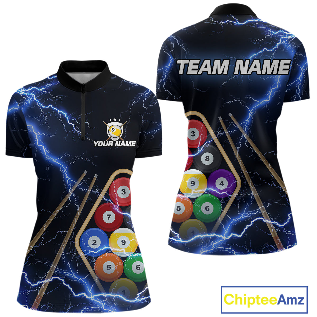 Blue 9 Ball Thunder Lightning Billiard Shirts For Women Custom 9 Ball Pool Team Jersey Polo, 1/4 Zip TDM5633