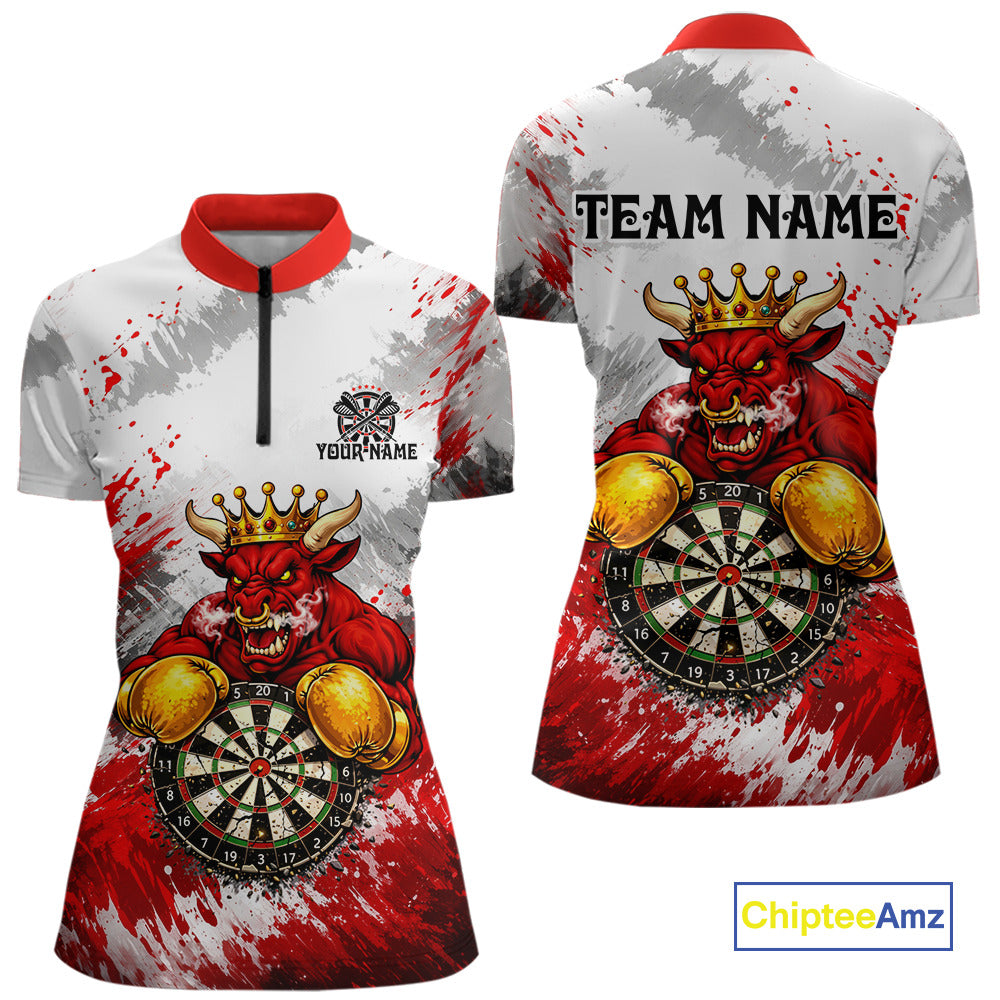 Personalized Black And Red Grunge Bull Darts Shirt For Women Custom Darts Jersey Team Polo & 1/4 Zip TDM5648