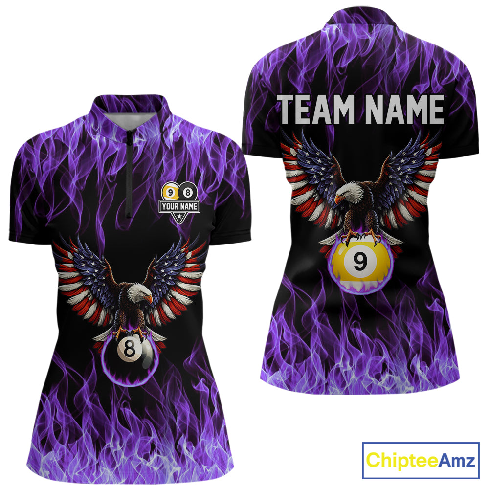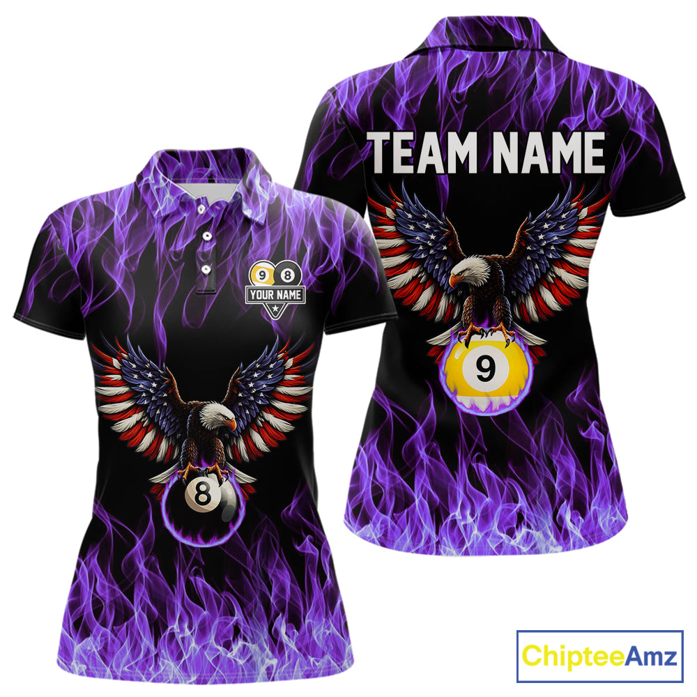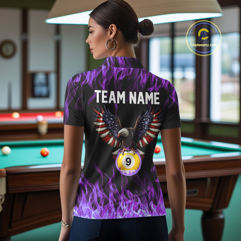 Purple Flaming American Flag Eagle 8 Ball & 9 Ball Billiard Shirt For Women Custom Pool Team Jersey TDM5653