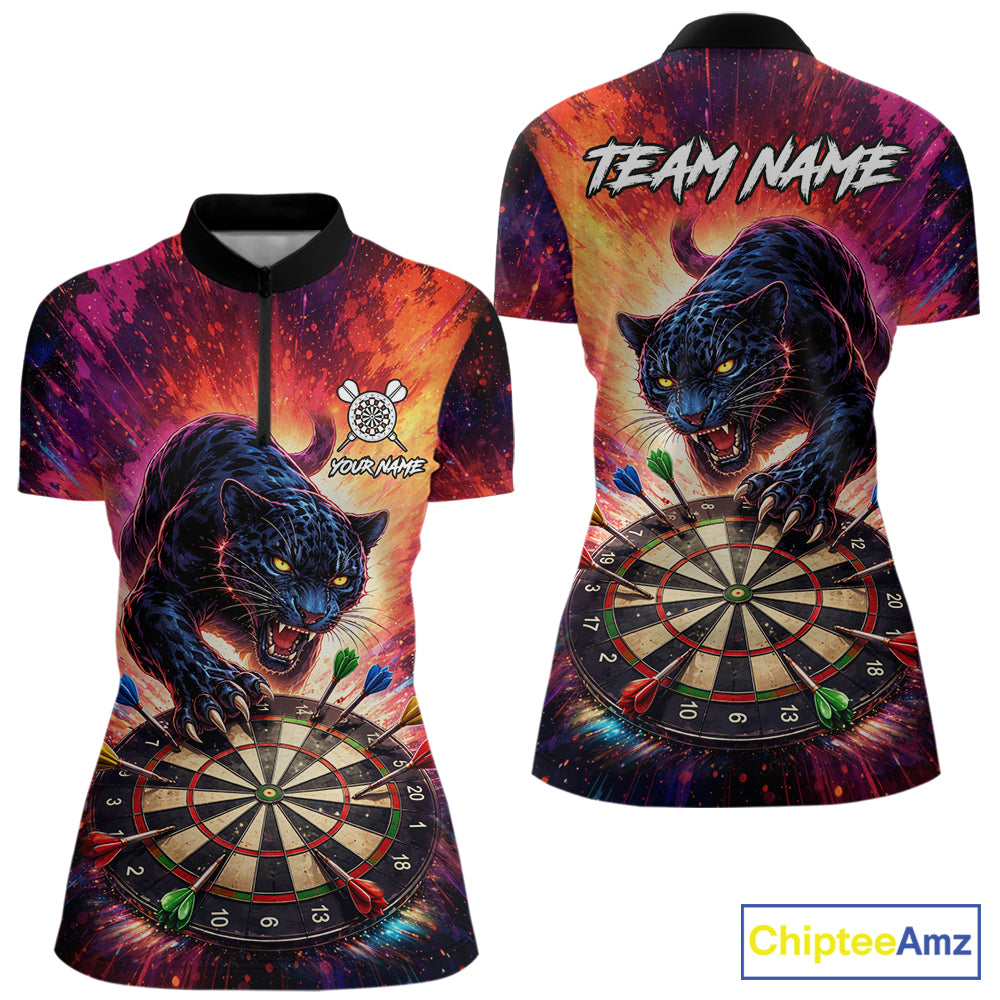 Personalized Colorful Panther Darts Shirt For Women Custom Darts Team Jersey Polo & Quarter Zip TDM5670