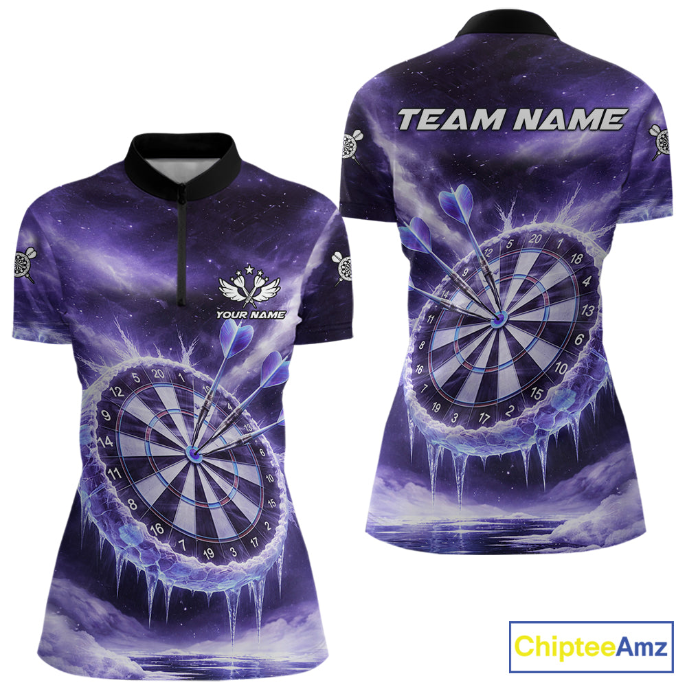 Personalized Purple Dartboard Icy Darts Shirt For Women Custom Darts Jersey Team Polo & 1/4 Zip TDM5681