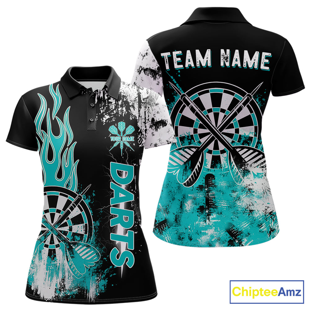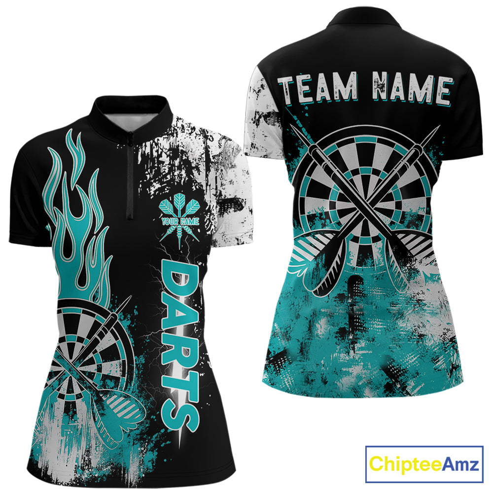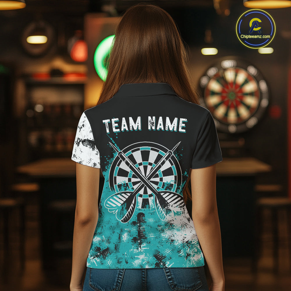 Personalized Turquoise Grunge Women Dart Shirts Custom Dart Jersey Team Polo & 1/4 Zip, Dart Uniform TDM5702