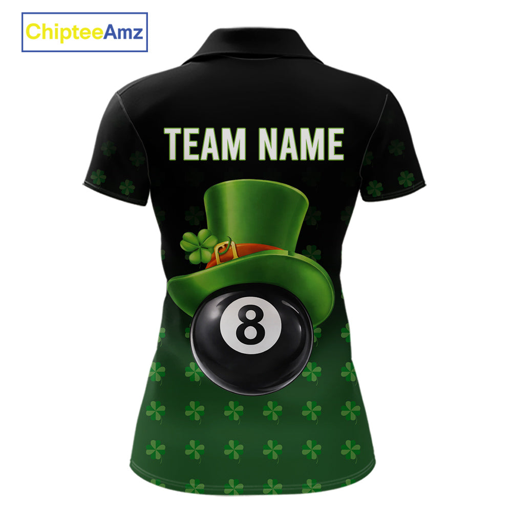 Black And Green 8 Ball Pool Shamrock Billiard Shirt For Women Custom St Patrick Day Billiard Jersey TDM5706