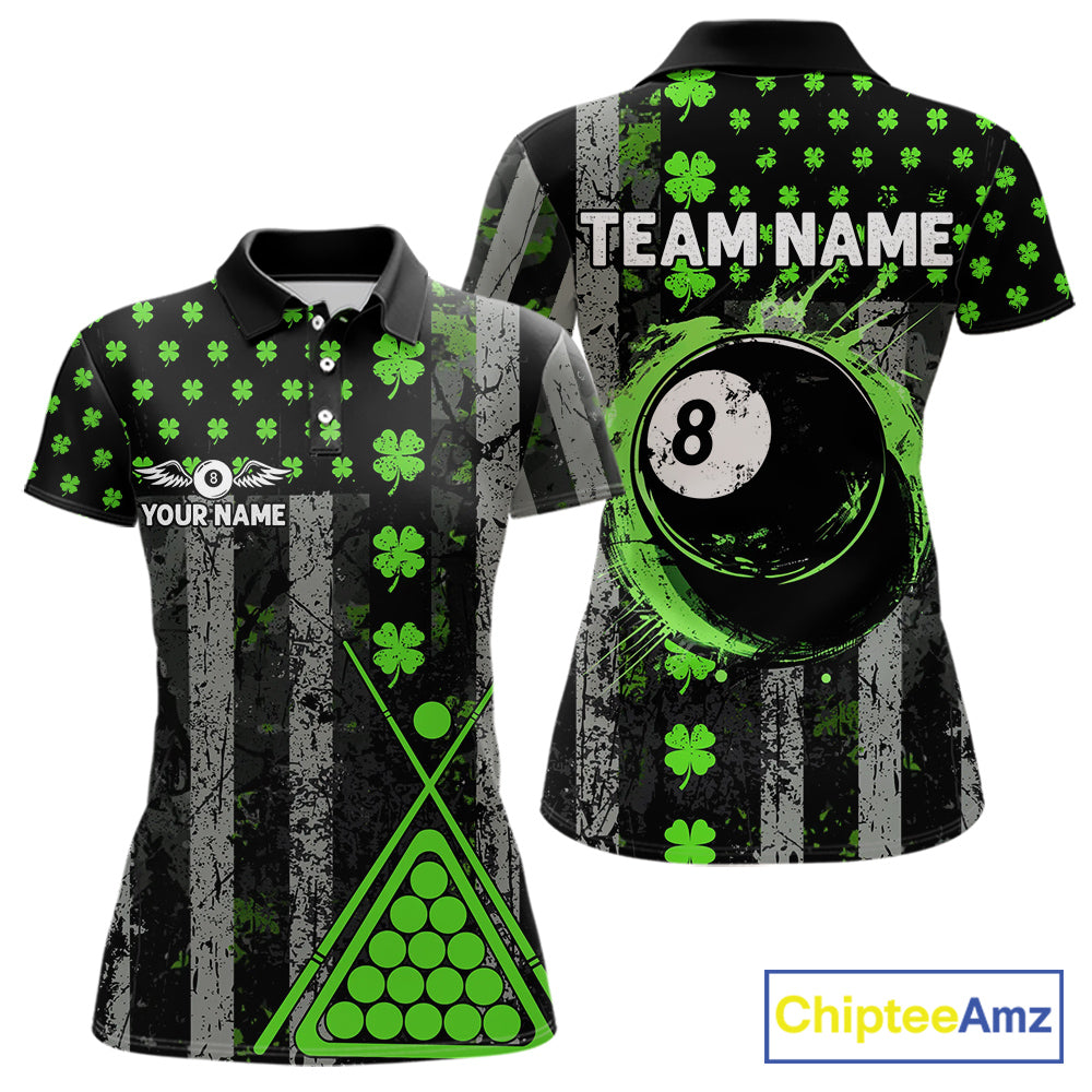 Green Grunge US Flag Luckiest Shamrock Billiard Shirt For Women Custom St Patrick Day Pool Jersey TDM5710