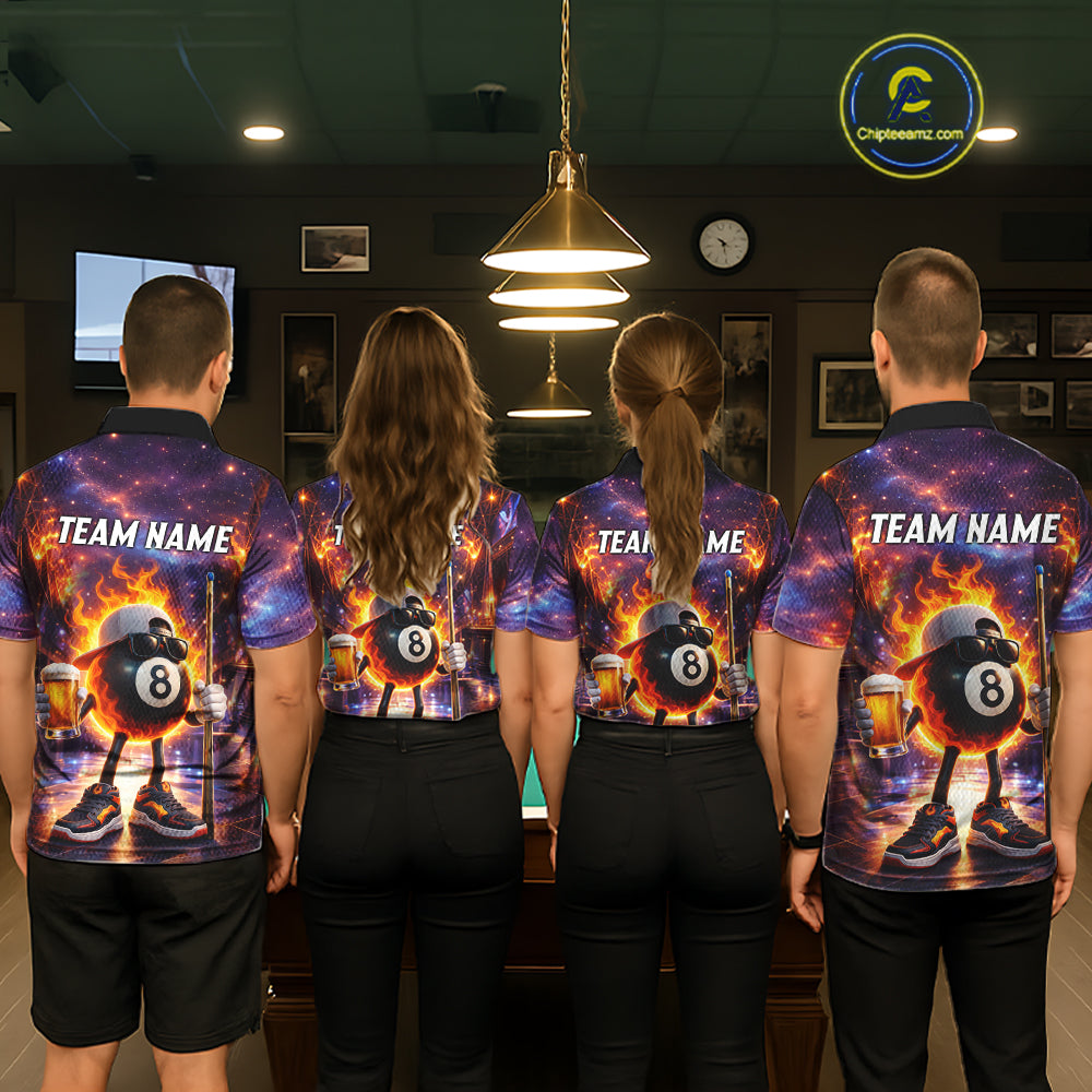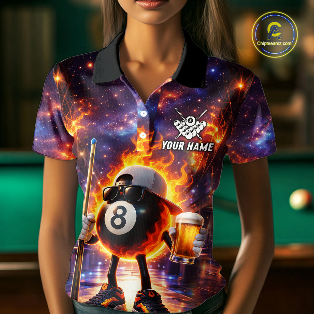 Flame 8 Ball Billiard Shirt For Women Custom Funny Pool Shirt, Billiard Team Jersey Polo & 1/4 Zip TDM5714