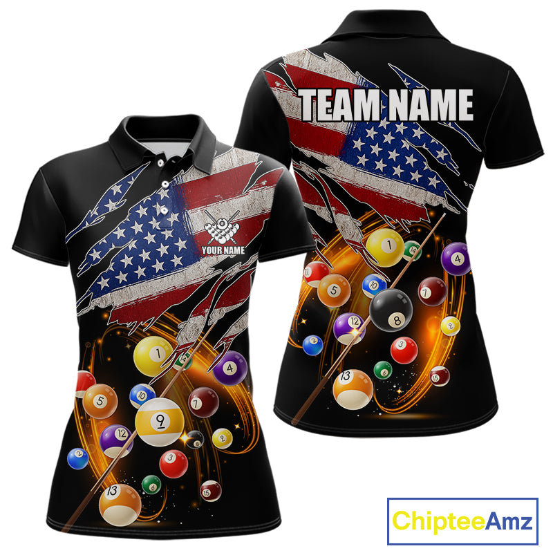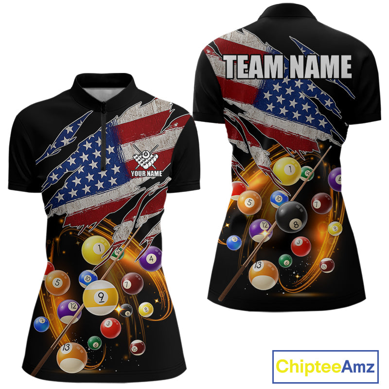 American Flag Pool Balls Billiard Shirt For Women Custom Patriotic Billiard Jersey Polo & 1/4 Zip TDM5730