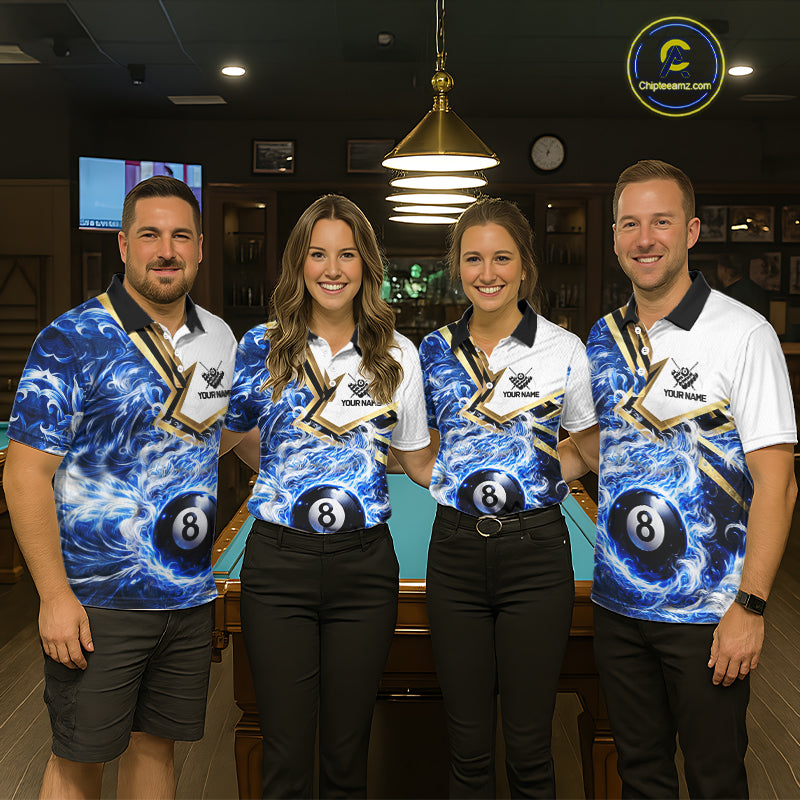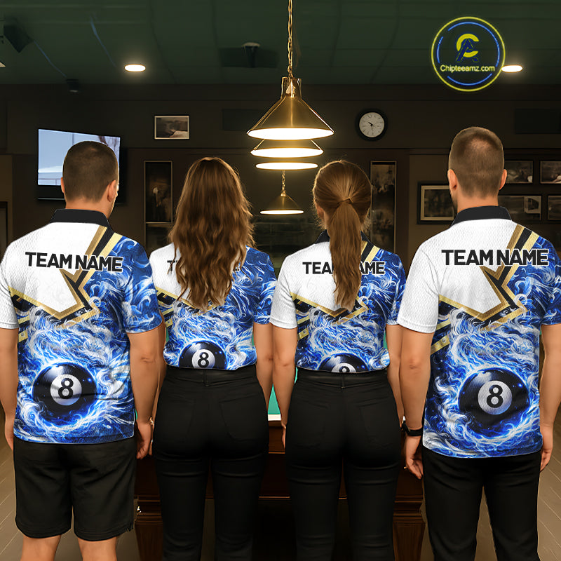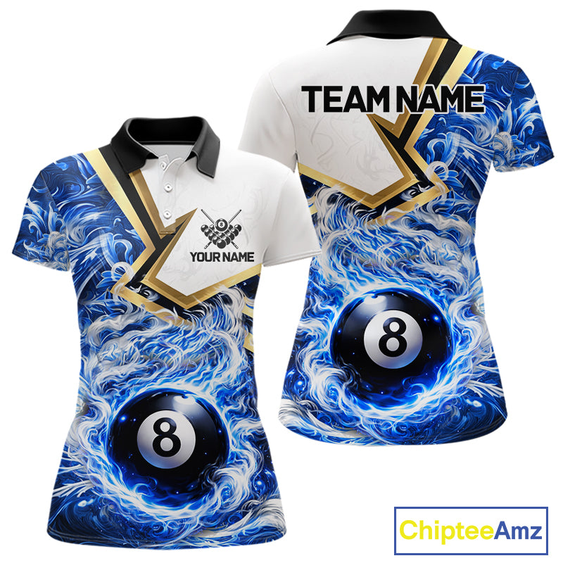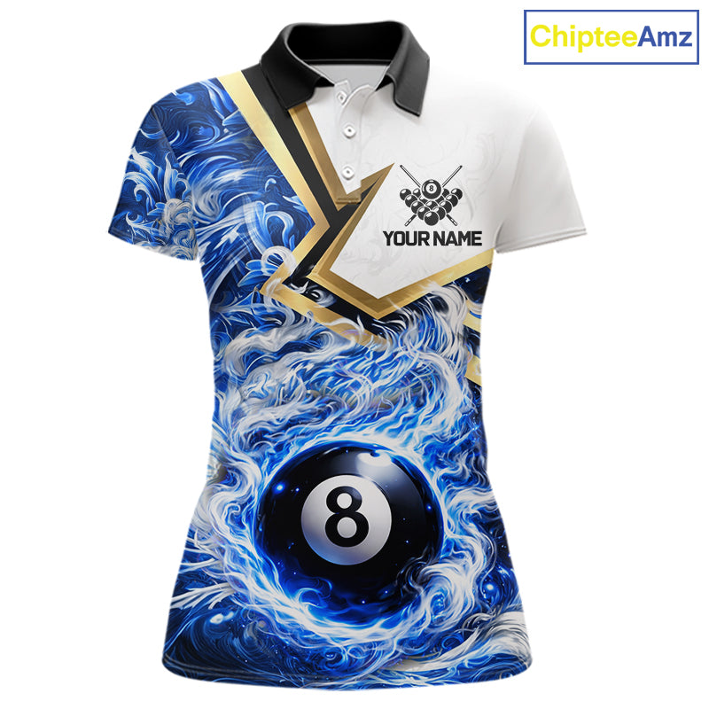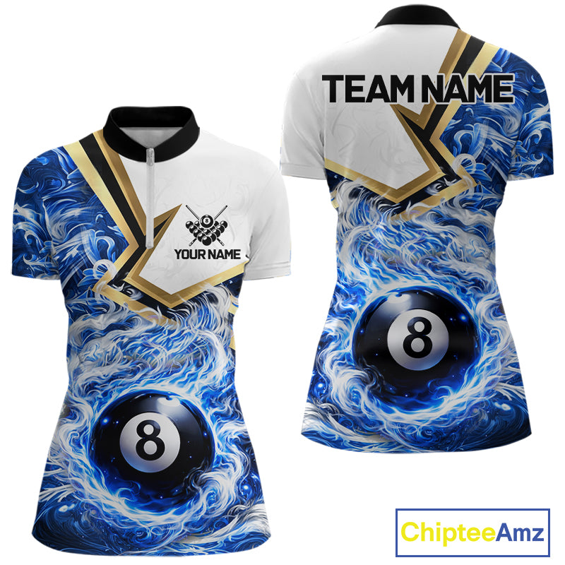 Blue 8 Ball Flame Smoke Golden Billiard Shirt For Women Custom Pool Team Jersey Polo & 1/4 Zip TDM5735