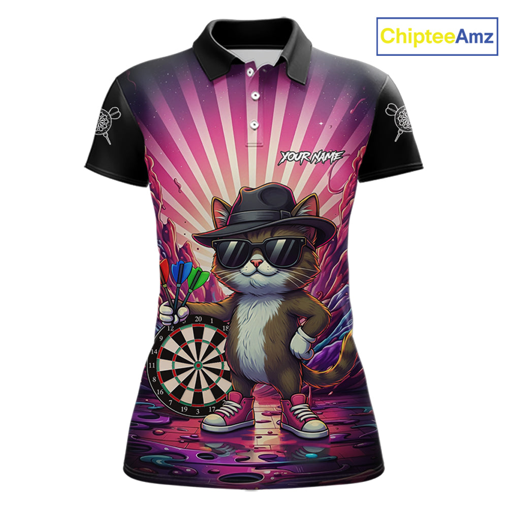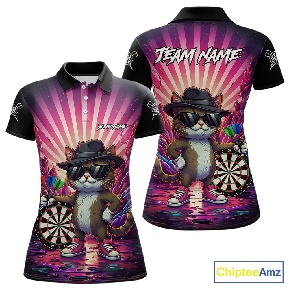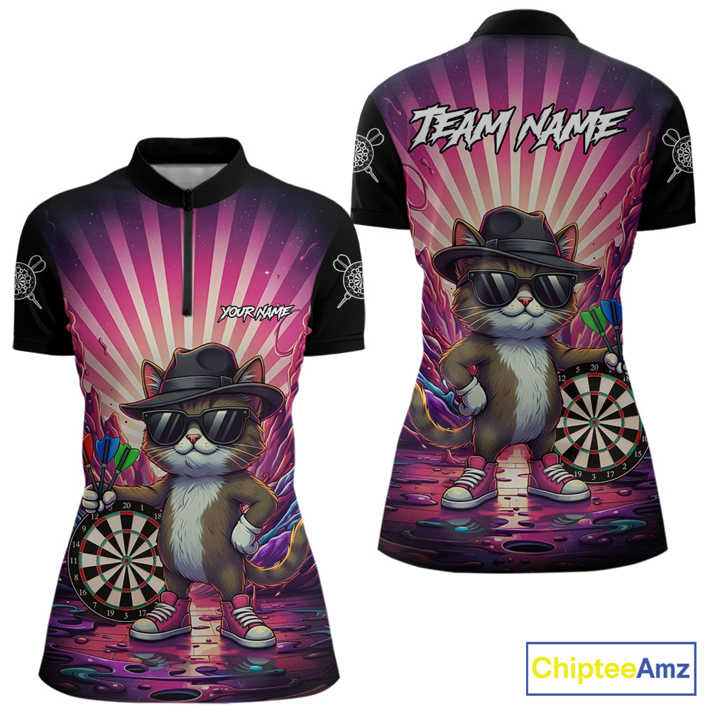 Pink Funny Cat Dartboard Neon Graffiti Darts Shirt For Women Custom Darts Jersey Team Polo & 1/4 Zip TDM5744