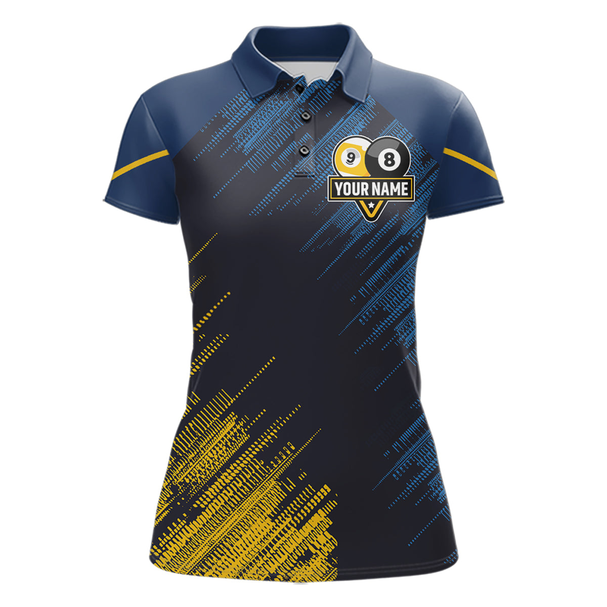 Personalized Blue Yellow 8 Ball & 9 Ball Pool Polo & 1/4 Zip For Women Custom Team Billiard Jersey TDM5745