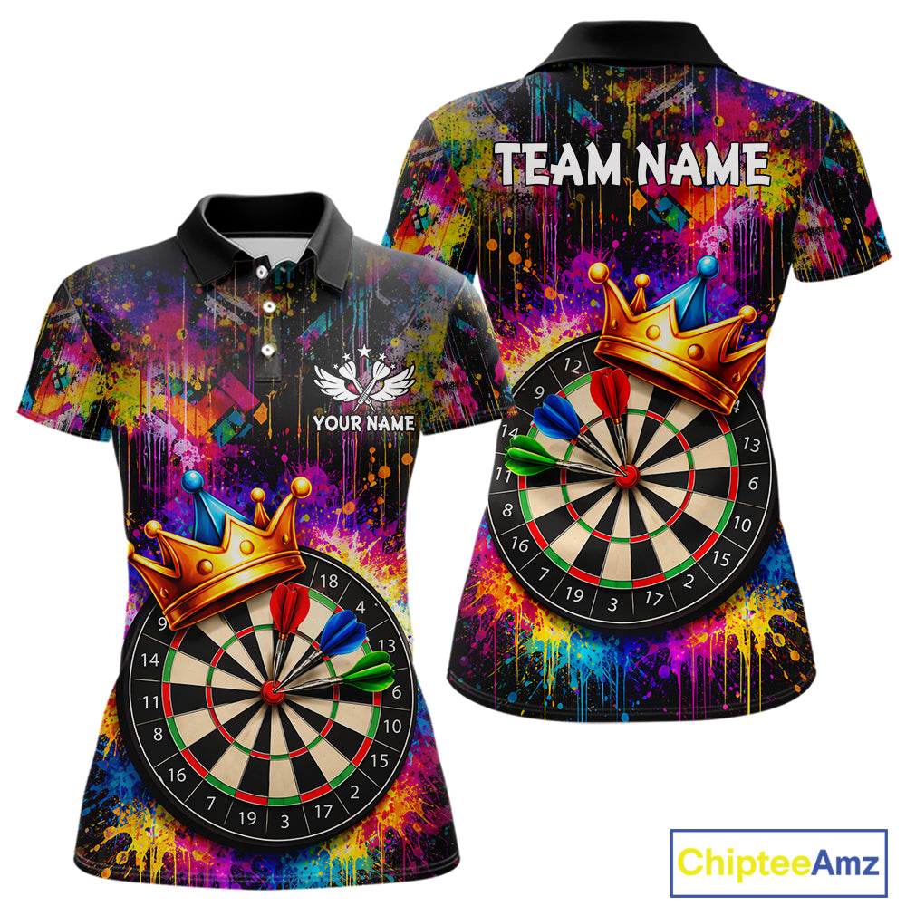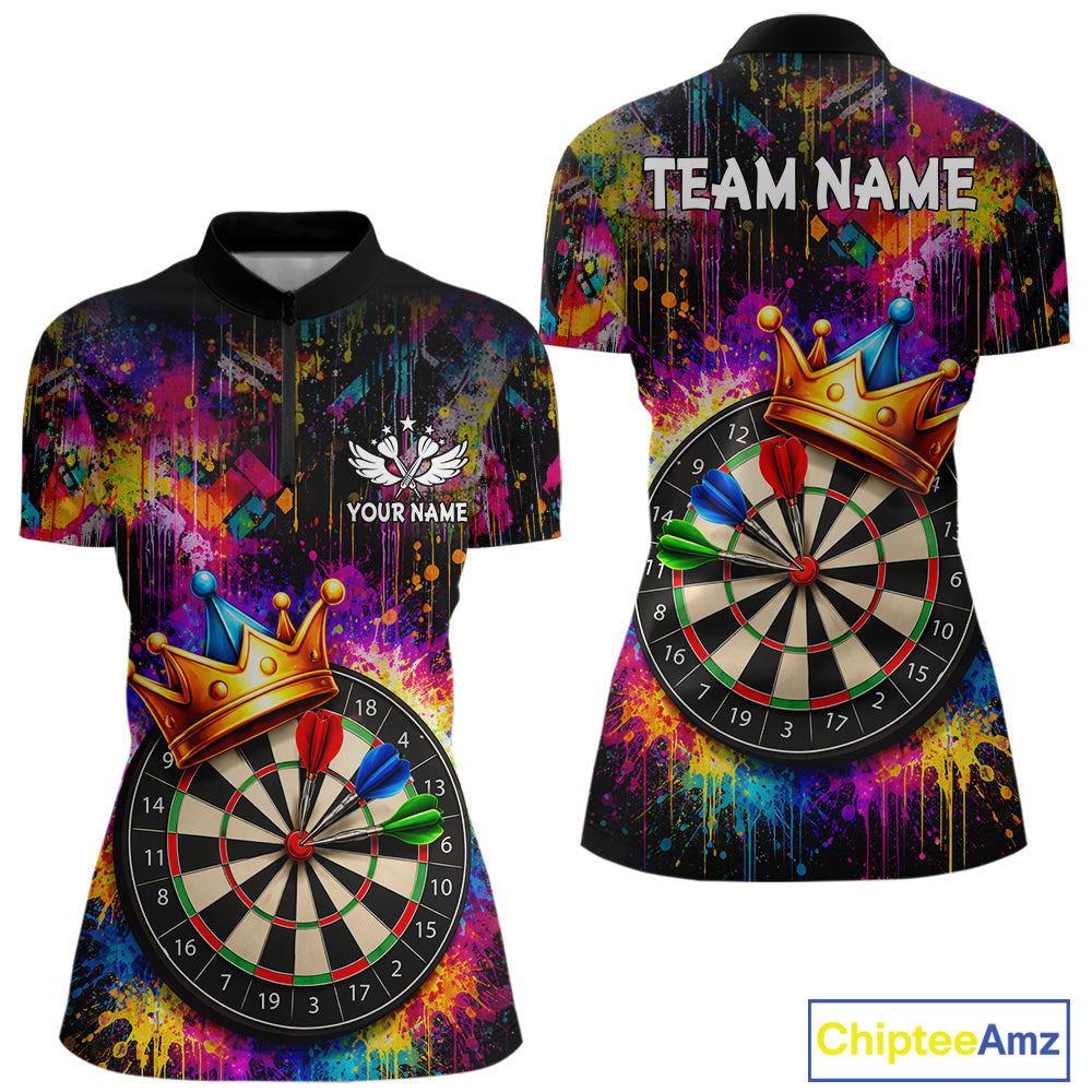 Funny Colorful Crown Dartboard Splash Darts Shirt For Women Custom Darts Jersey Team Polo & 1/4 Zip TDM5762