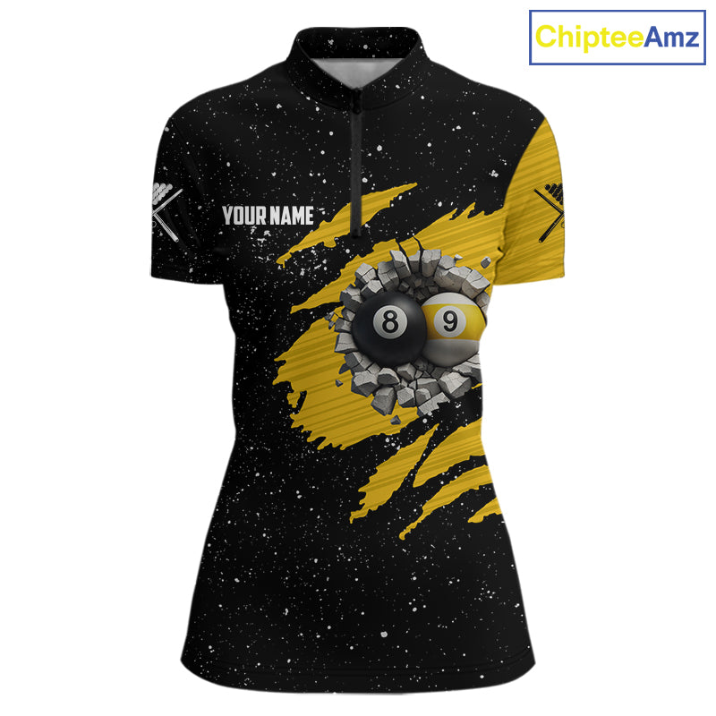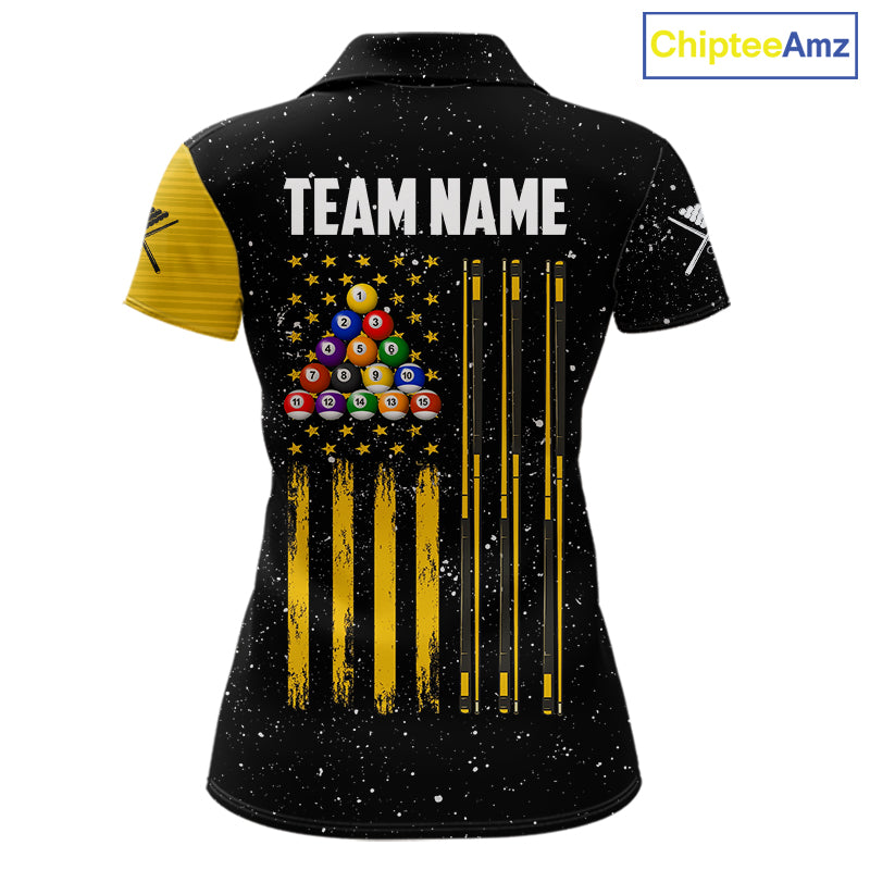 Yellow Black Grunge US Flag 8 Ball & 9 Ball Pool Women's Billiard Shirt Custom Billiard Team Jersey TDM5777