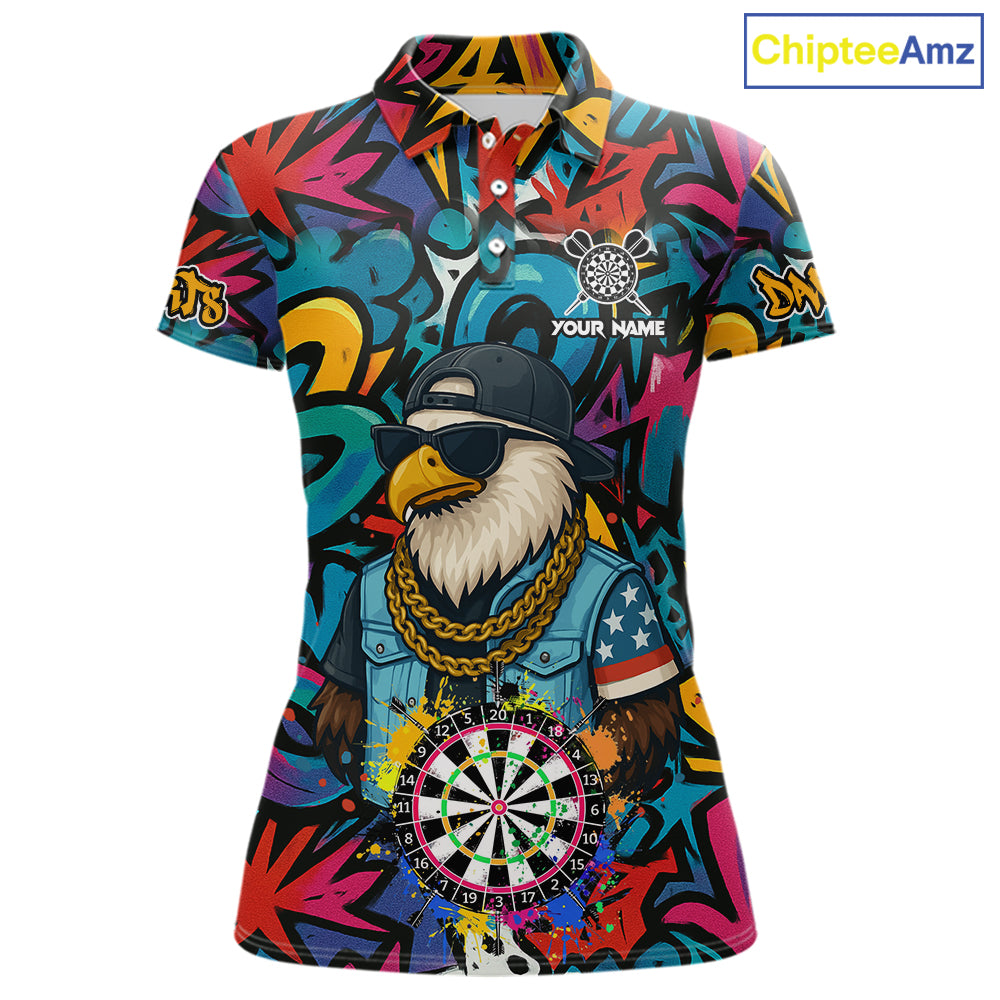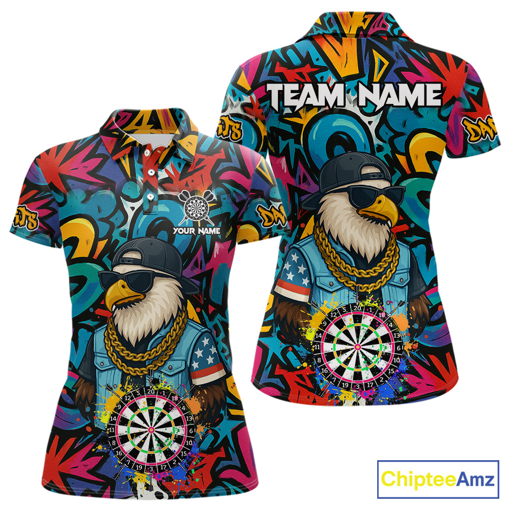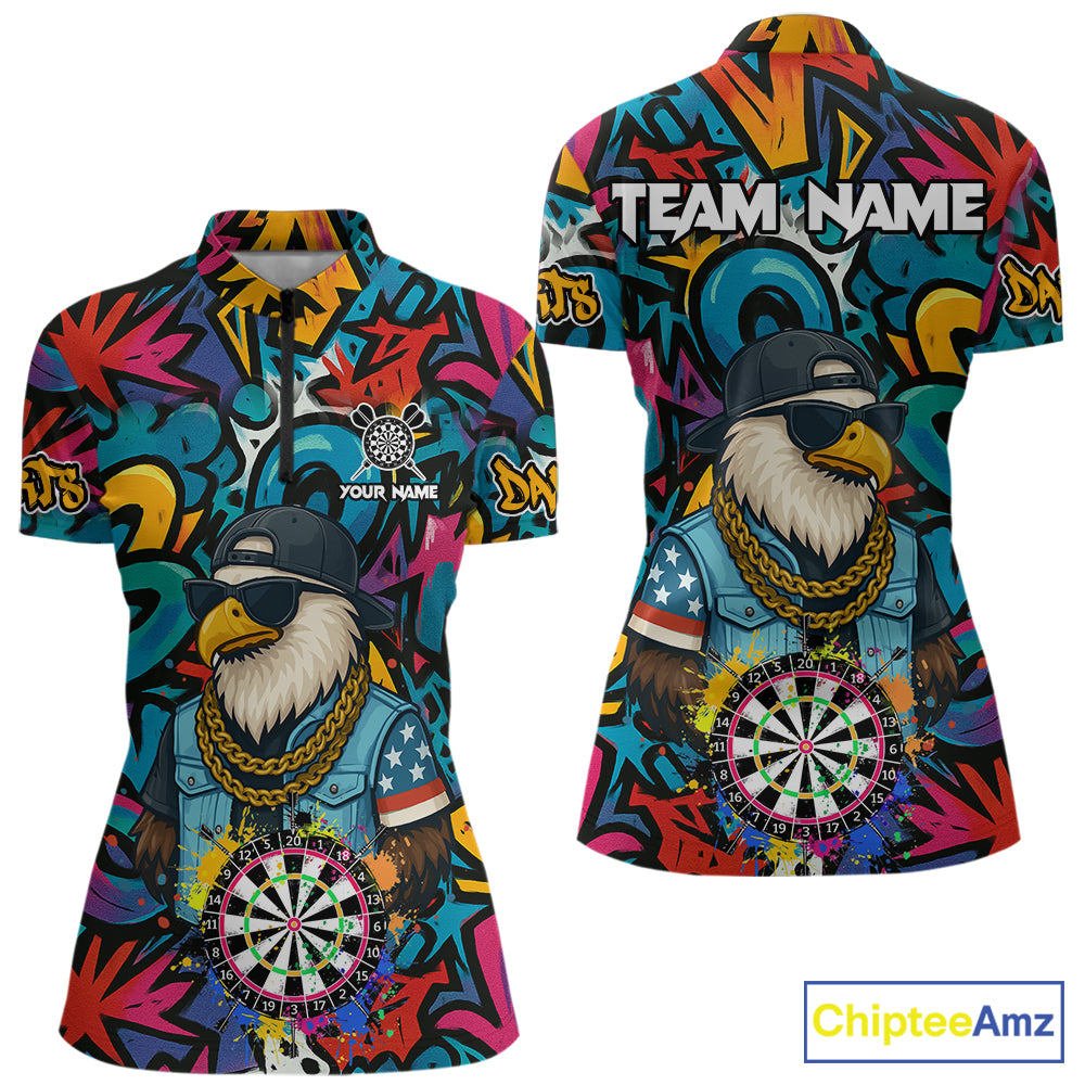 Funny Eagle Colorful Graffiti Darts Shirt For Women Custom Darts Jersey Team Polo & 1/4 Zip TDM5783