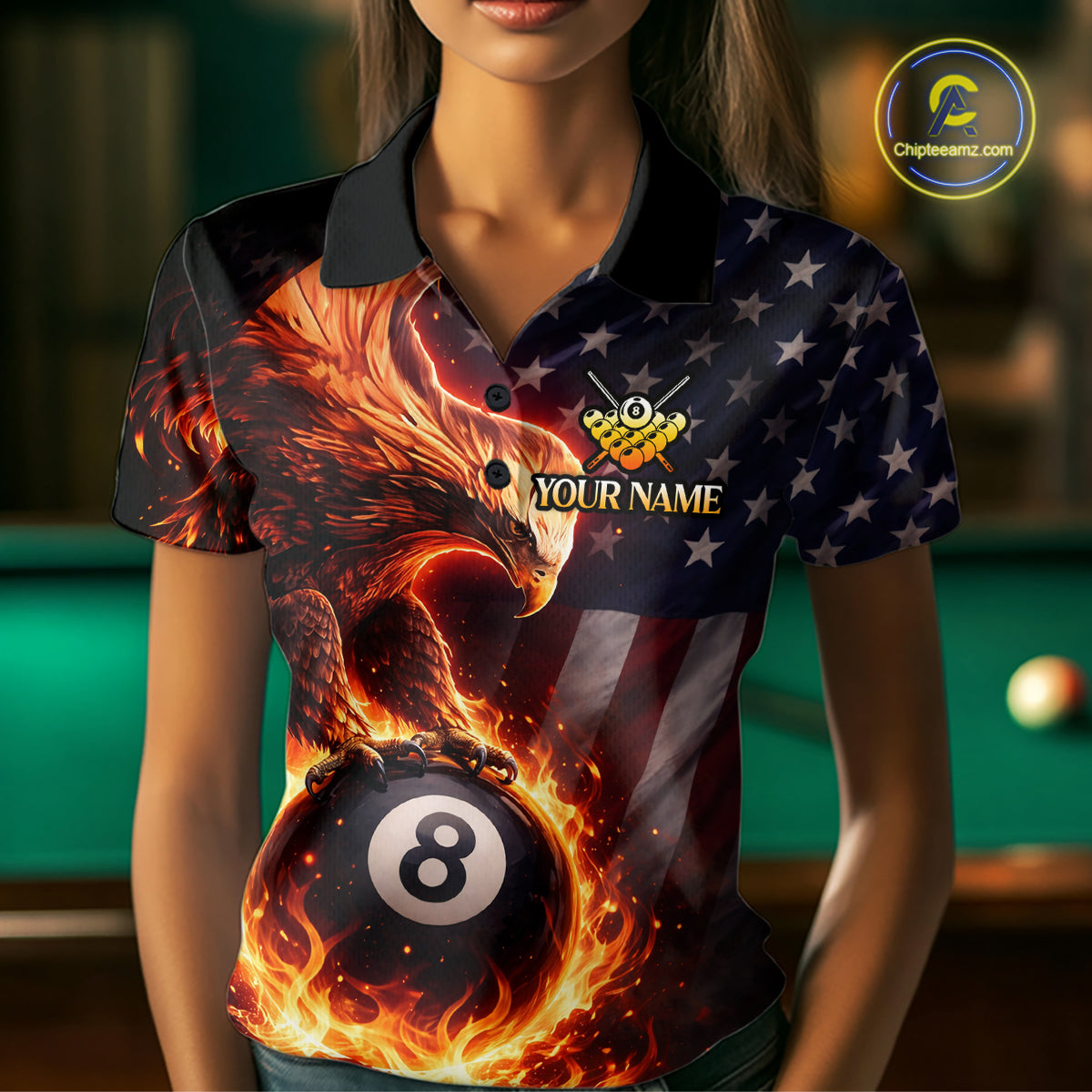 American Flag Flame 8 Ball Eagle Billiard Shirt For Women Custom Pool Team Shirt, Billiard Jersey TDM5787