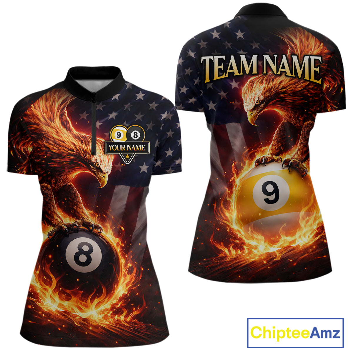 American Flag Flame 8 Ball & 9 Ball Eagle Billiard Shirt For Women Custom Patriotic Pool Team Jersey TDM5789