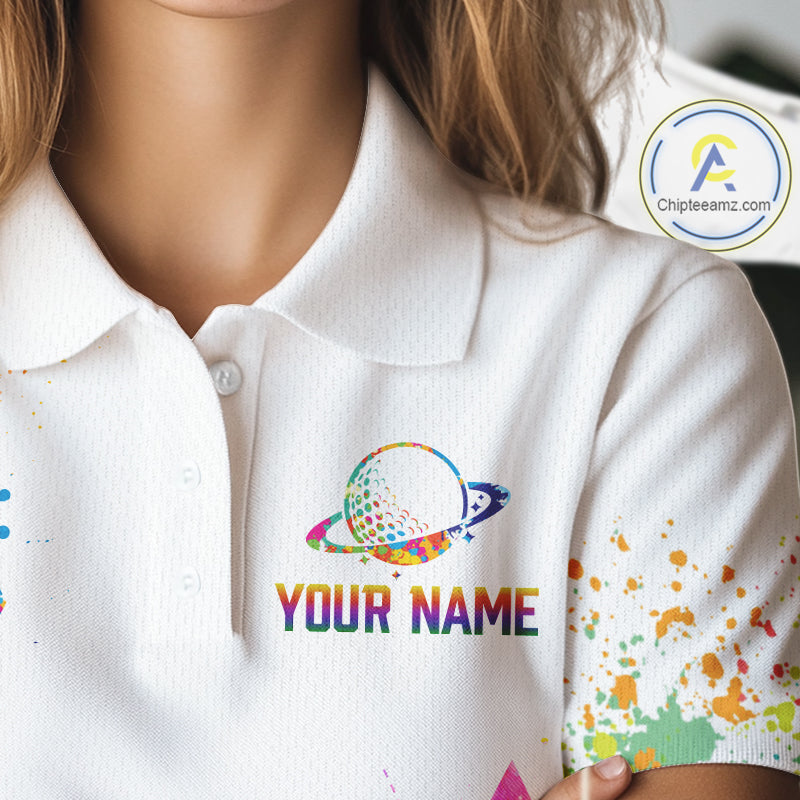 Womens Golf Polo Shirt Argyle Pattern Golf Shirts For Women Funny Astronaut Watercolor Golf Gifts NHN0006