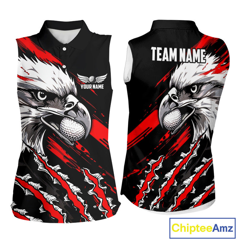 Womens Sleeveless Golf Polo Shirts Custom Red & Black Grunge Pattern Eagle Golf Shirts For Men, Golf Apparel NHN0062