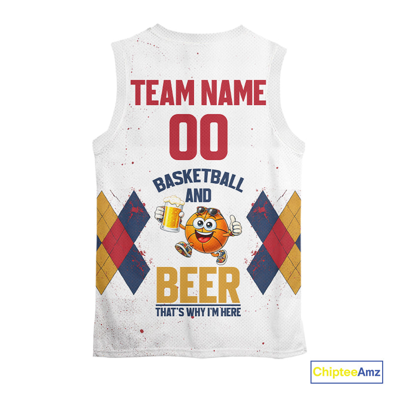 Funny Basketball And Beer Custom Argyle Basketball Shirt, Personalized Basketball Jersey For Team TDM5786