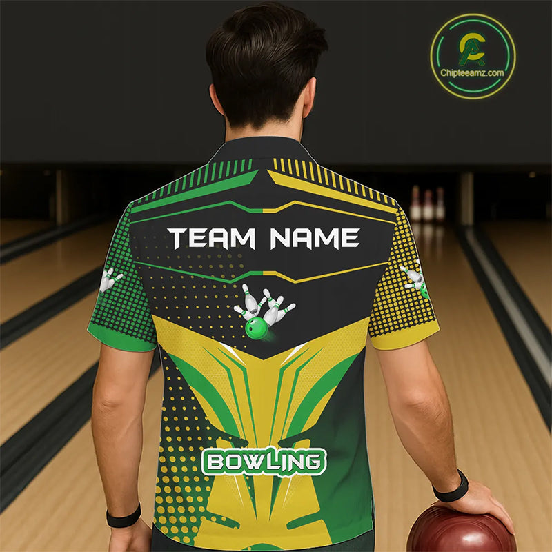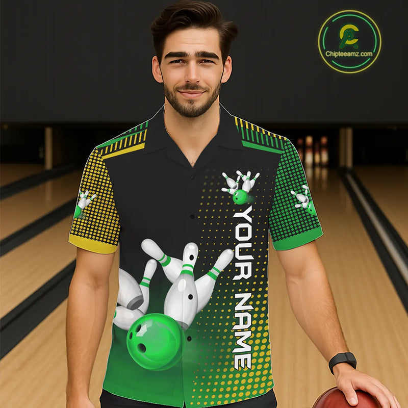 Yellow and Green pattern Bowling Hawaiian Shirt Custom Team Bowling Jerseys, Gift For Bowler NQS11244