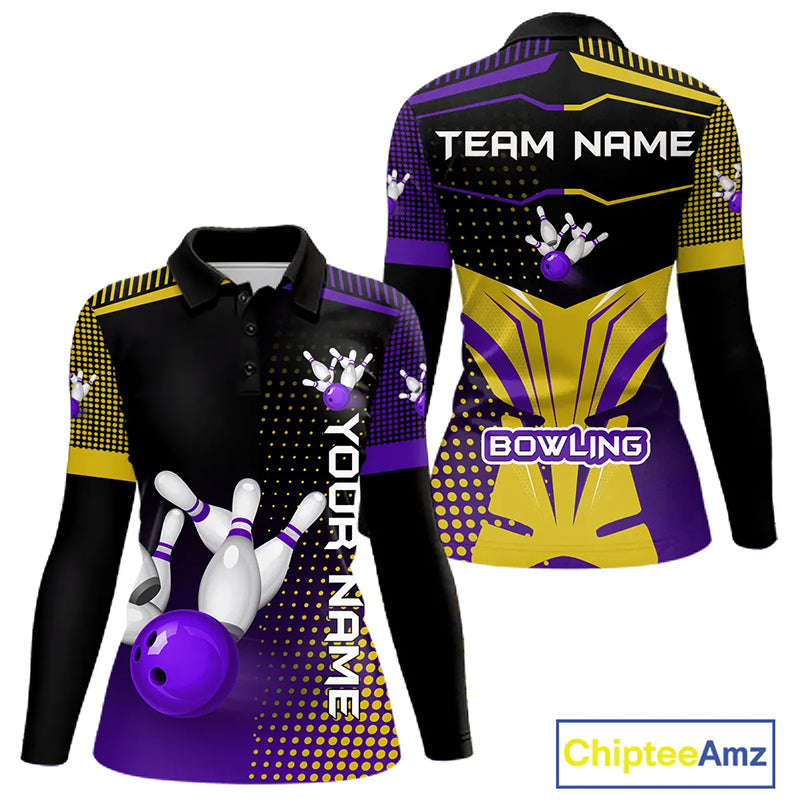 Yellow and Purple pattern Bowling shirts For Women Custom Team Bowling Jerseys, Gift For Bowler NQS11242
