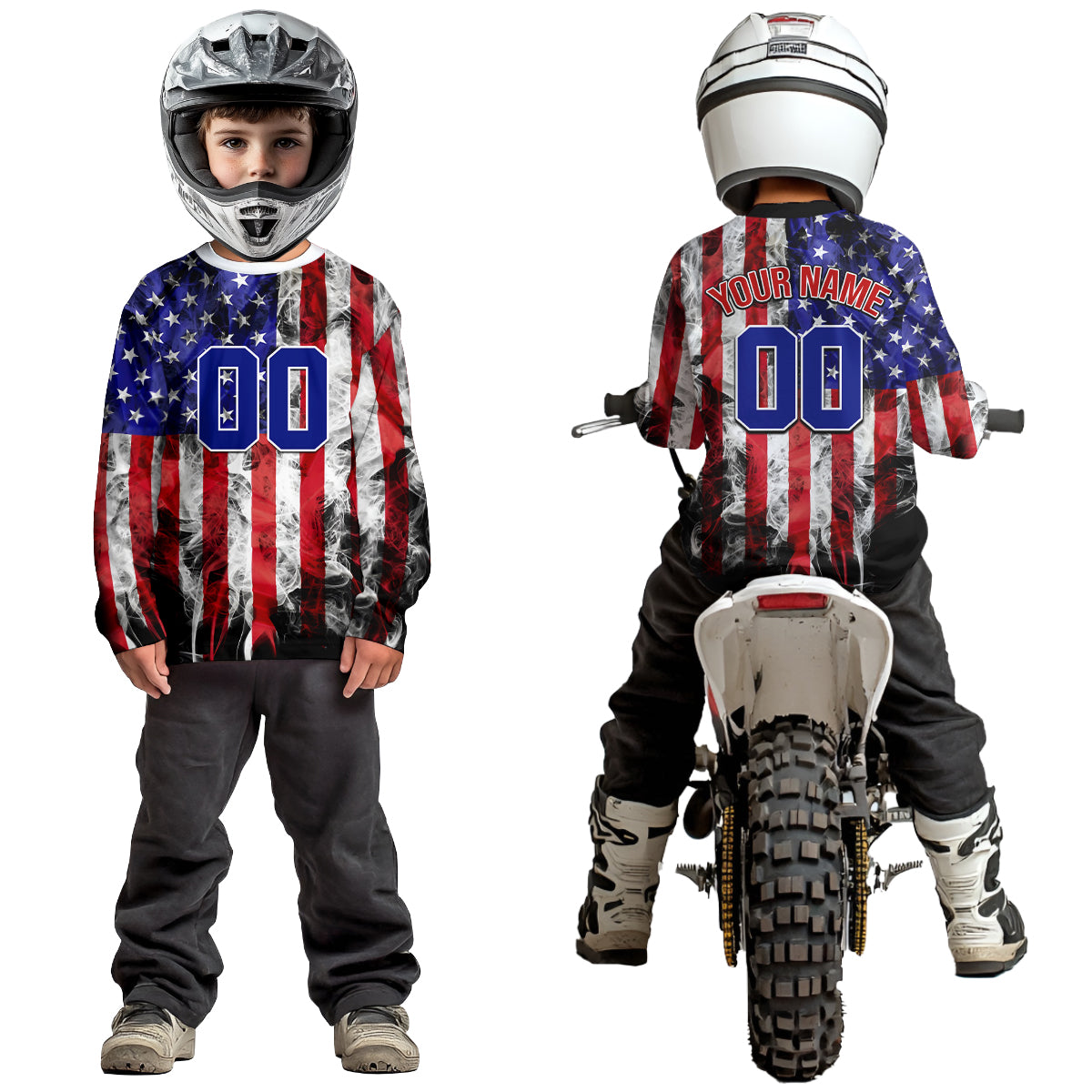 Youth US Flag Dirt Bike Jersey Off-Road Shirt Custom Motocross Jersey UPF30+ Kid Men Women DNT72