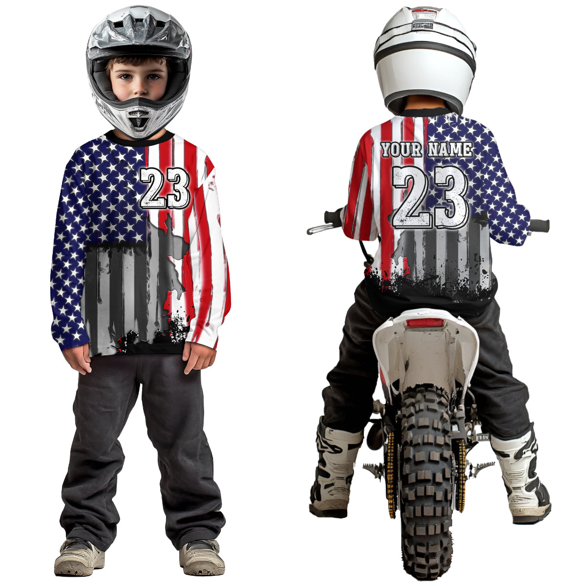 Youth US Flag Dirt Bike Jersey Off-Road Shirt Custom Motocross Jersey UPF30+ Kid Men Women DNT80