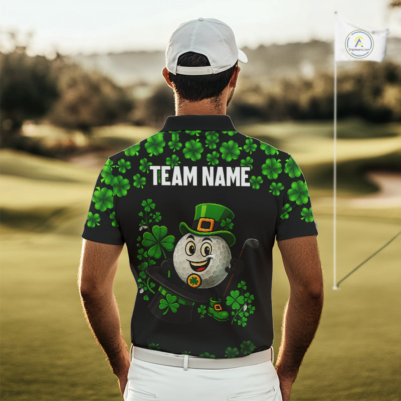 Black and Green Shamrock Funny Golf Polo Shirt For Men Custom St Patrick's Day mens golf outfit NQS11164