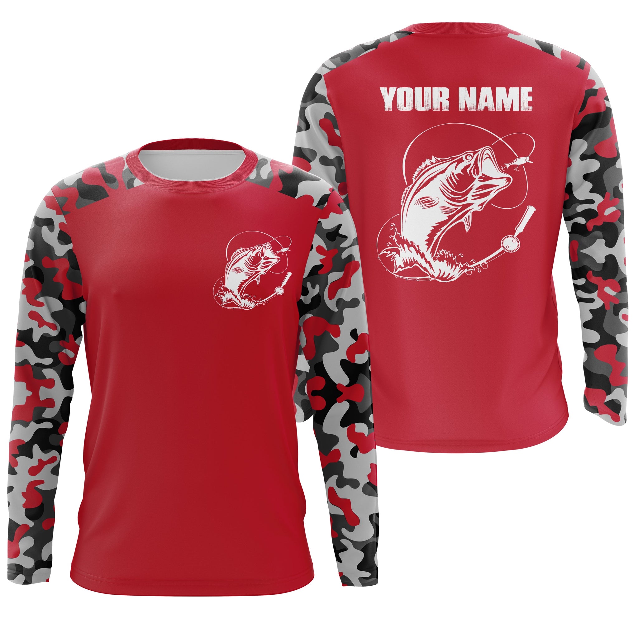 Performance Long Sleeve Bass Fishing Sun/UV Protection Shirt UPF30+, Largemouth Bass Fishing Jerseys FSDA7