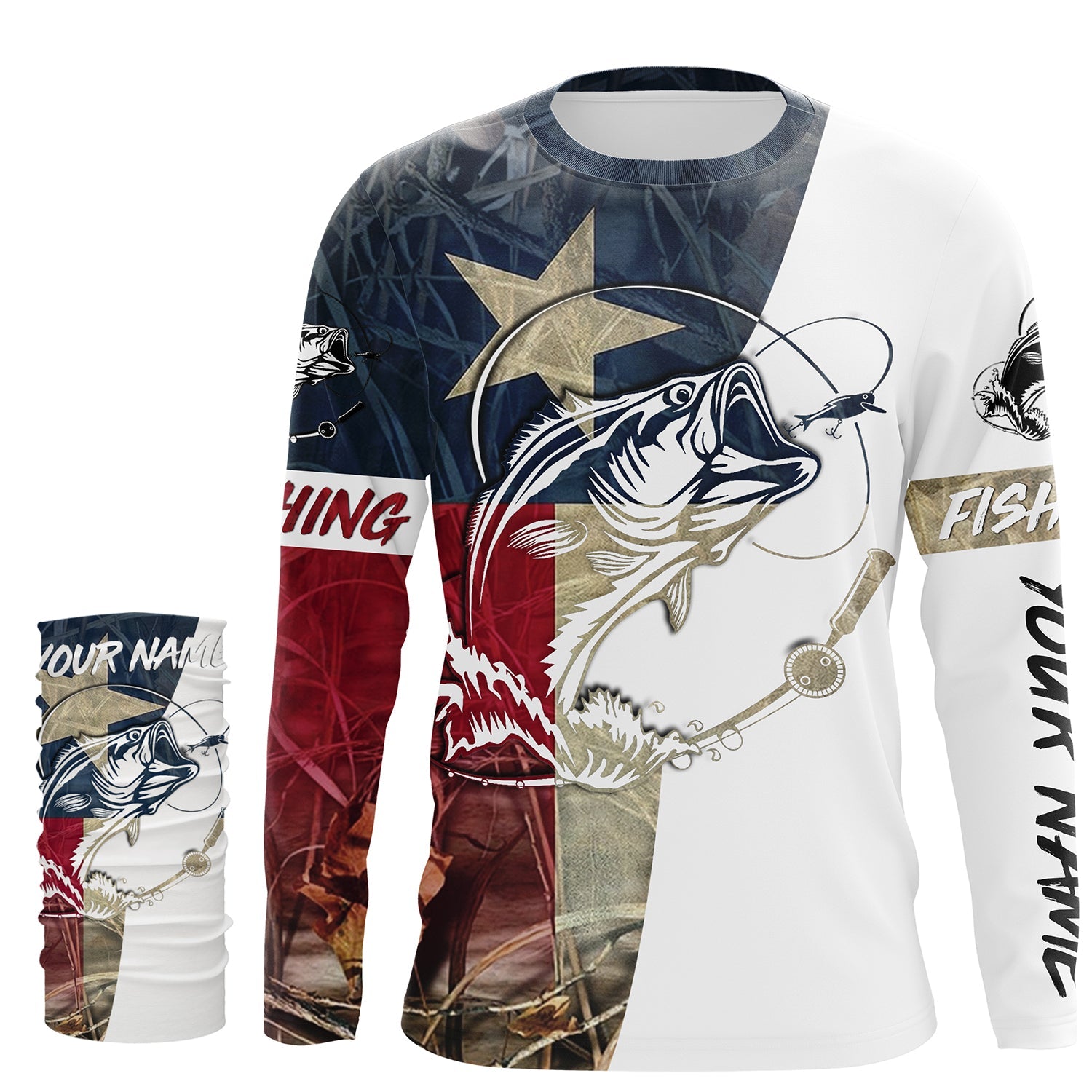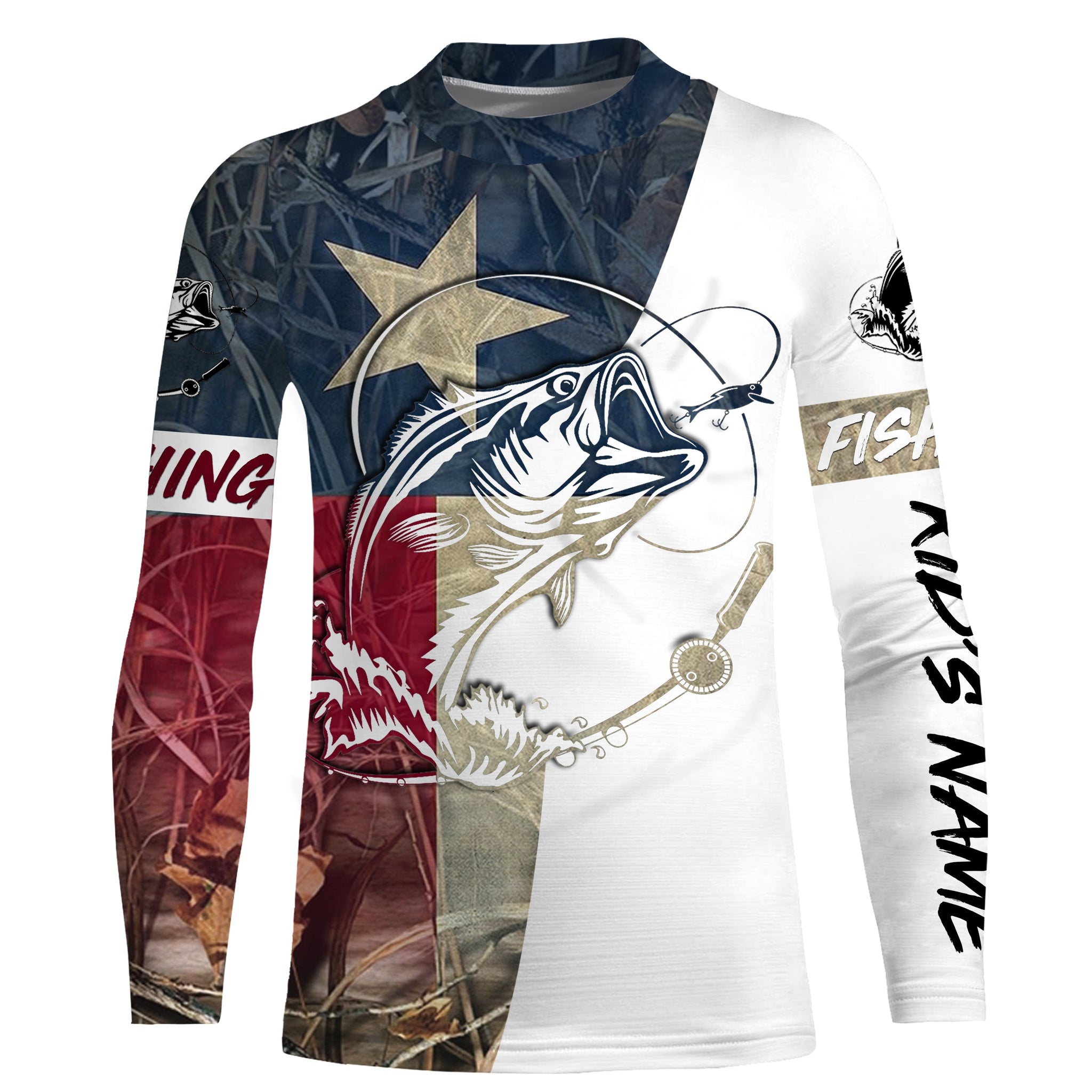 Texas Bass Fishing Texas Flag Camo Custom Name Sun/UV Protection 3D Shirts For Fisherman Personalized Fishing Gifts FSD2871