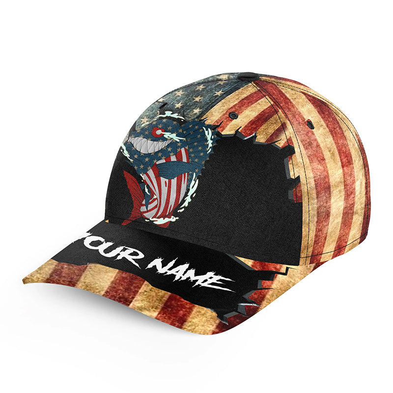 Bass Fishing 3D American Flag patriotic Custom fishing hat Unisex Fishing Baseball Angler hat NQS1834