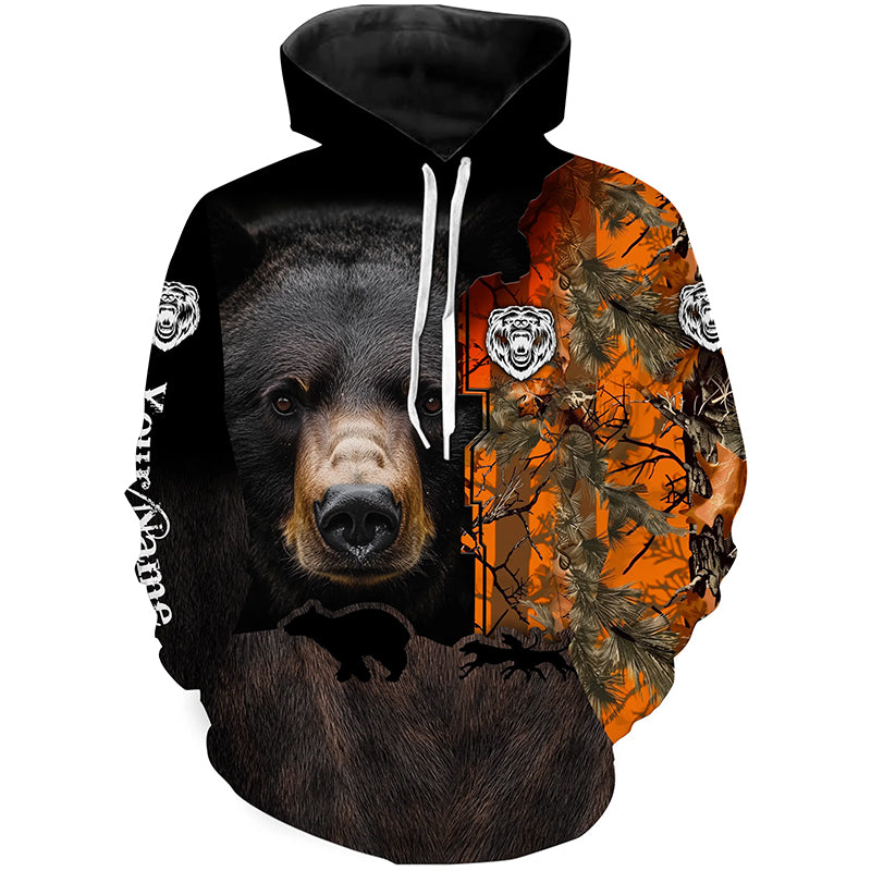Black bear hunting dog orange camo Custom Name 3D All Over Printed Shirts Personalized hunting apparel NQS4169