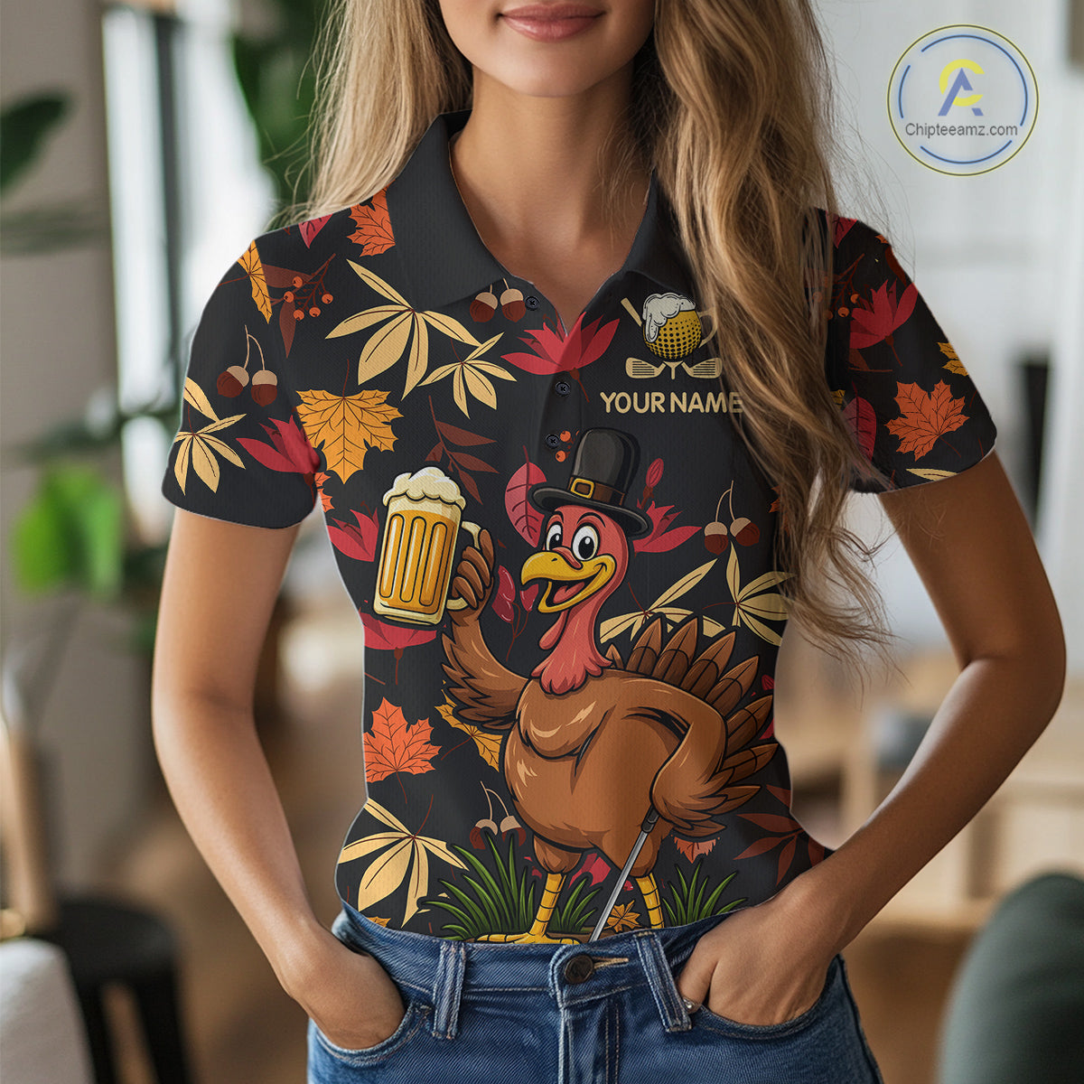 Funny Turkey Golf Beer Thanksgiving golf shirt Custom Funny golf shirt for Women, womens golf clothes NQS10964