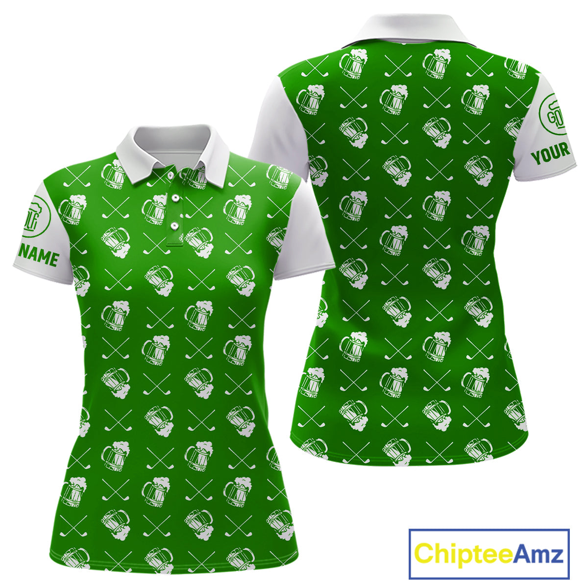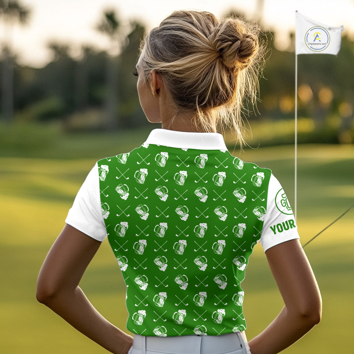 Green and white golf pattern Women Golf polo shirts custom name golf beer outfit ladies golf clothes NQS9861