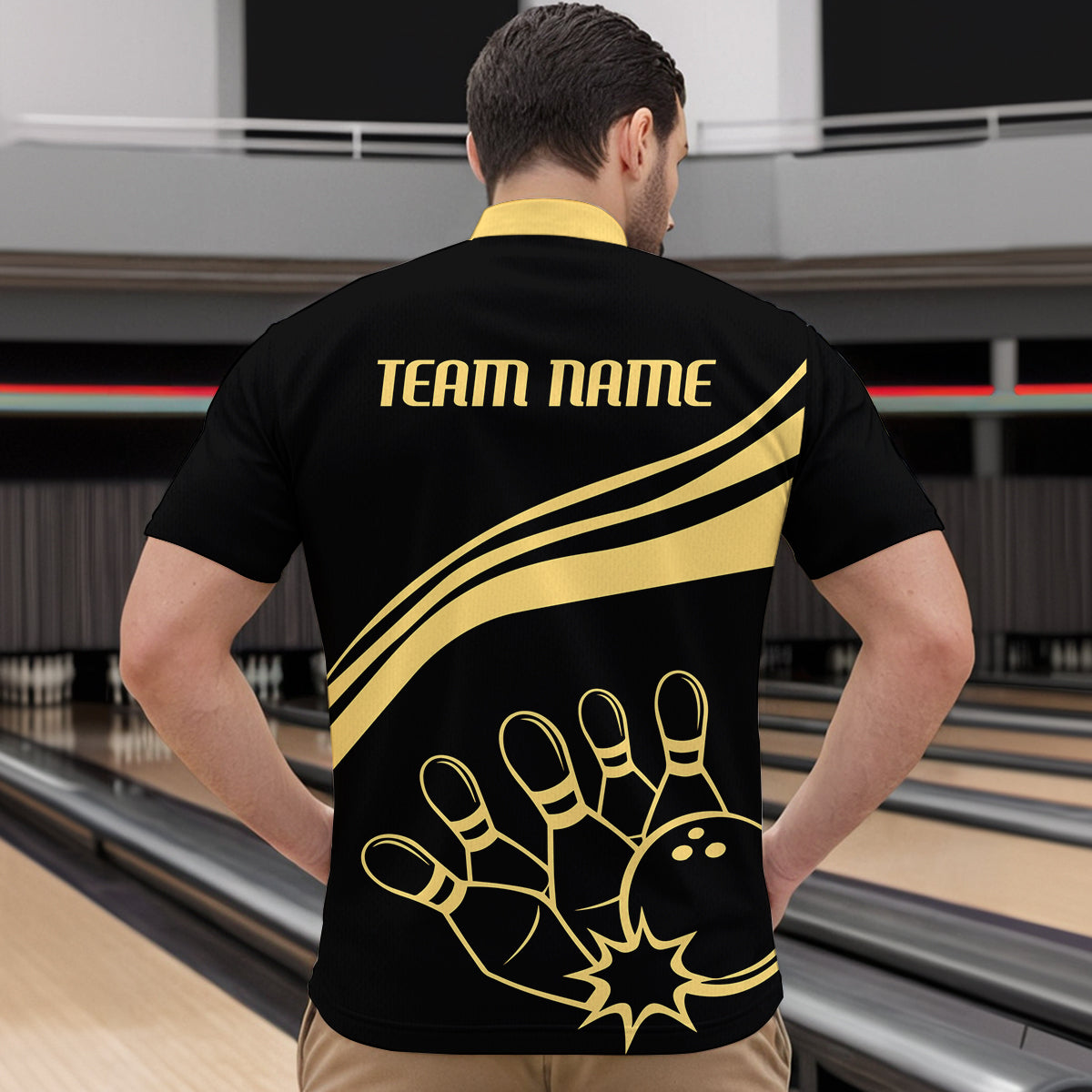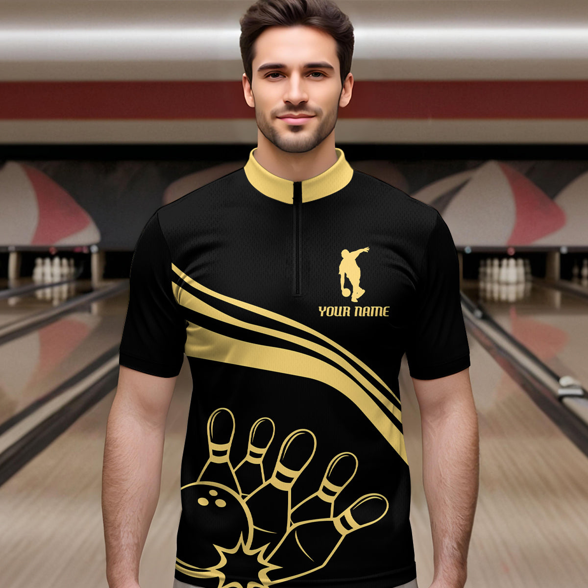 Black&Gold Bowling Quarter-Zip Shirt Men Custom Bowling Jersey Vintage Bowling Team League Shirt BDT116