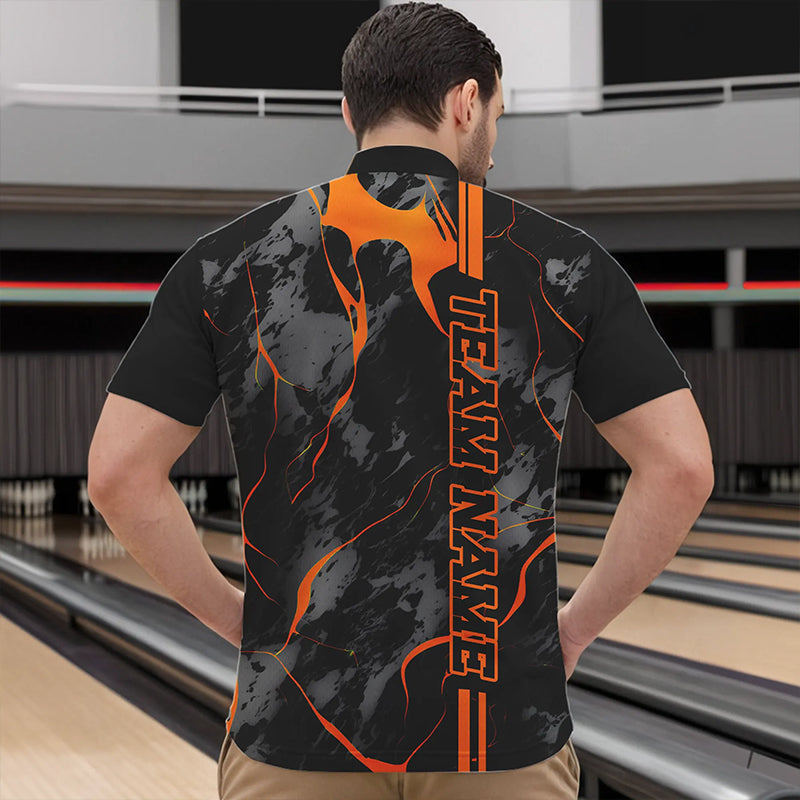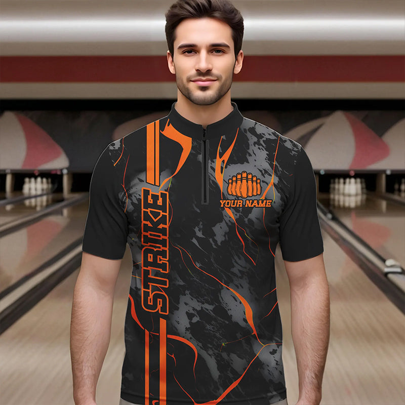 Custom Orange Strike Bowling Shirts Men Quarter Zip Camo Bowling Team Jerseys Bowling League IPHW5385