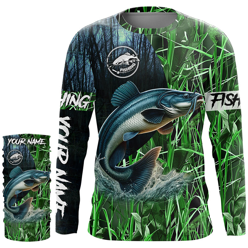 Catfish fishing green camouflage fishing clothing Custom UV protection performance fishing shirt NQS2615