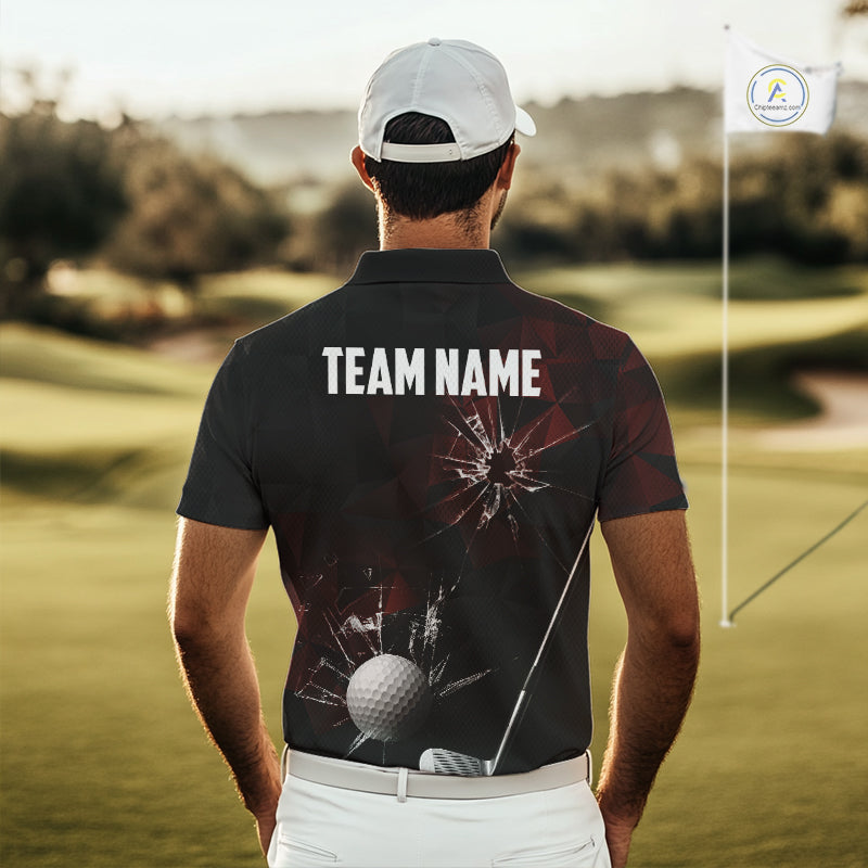 Black and Red Camo Broken golf ball Mens Golf polo shirts Custom Team Golf attire for men NQS10449