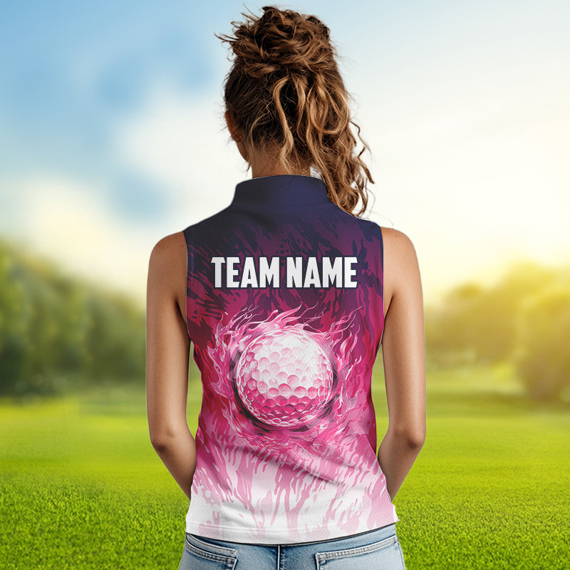 Funny Flamingo pink camo flame golf ball Women Golf Sleeveless Polo Shirt Custom Ladies Golf tops NQS9697